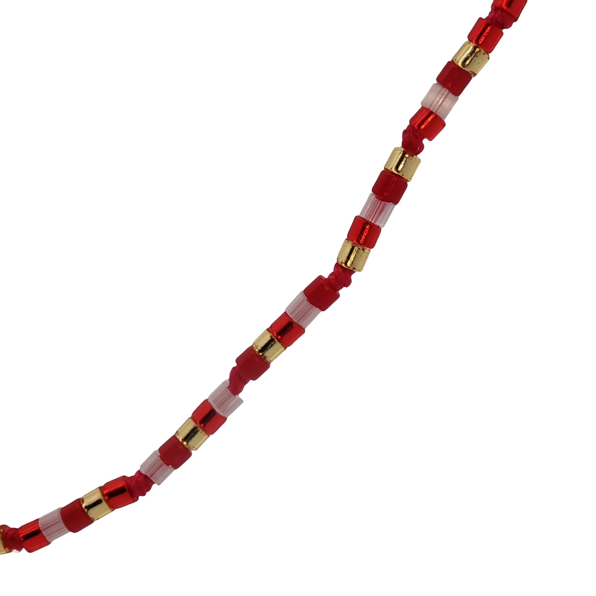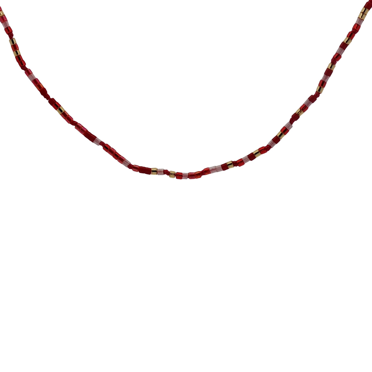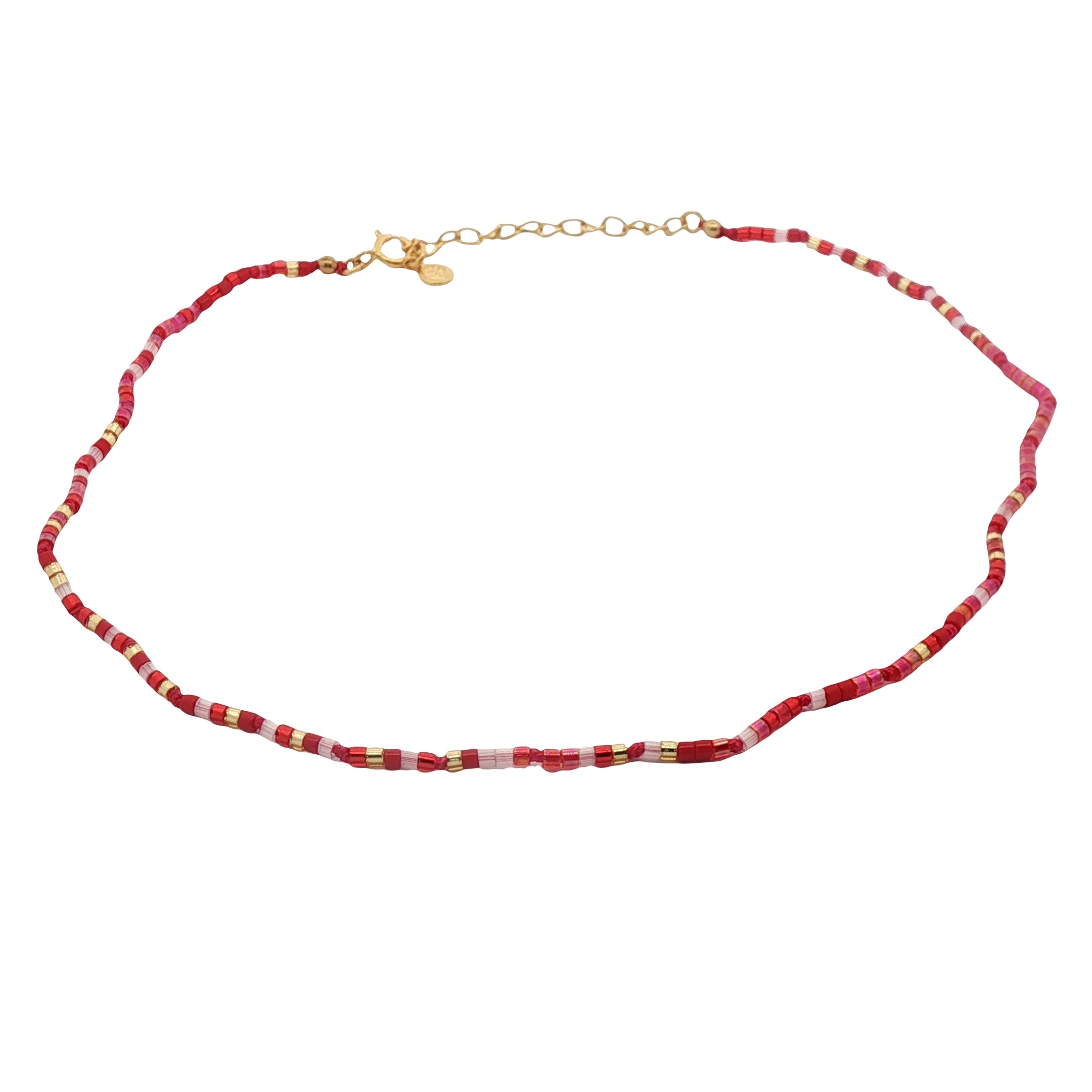 Collier doré en perles Miyuki rouges et roses 38 cm