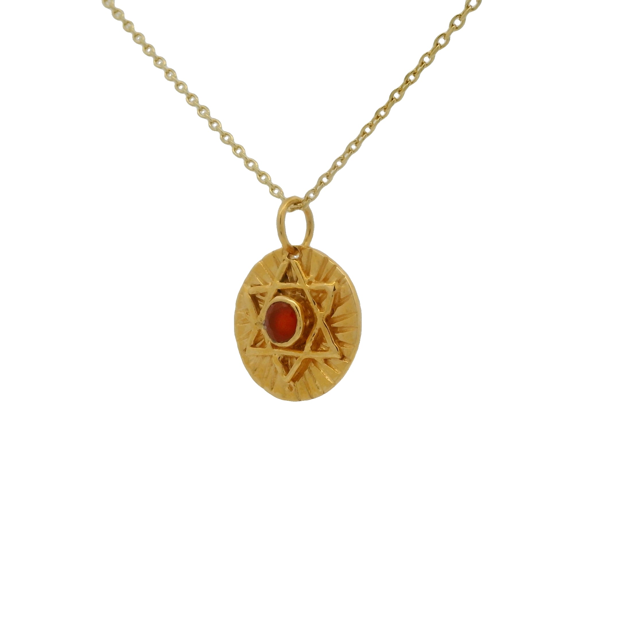 Collier doré avec médaille étoile de David et onyx rouge 42cm