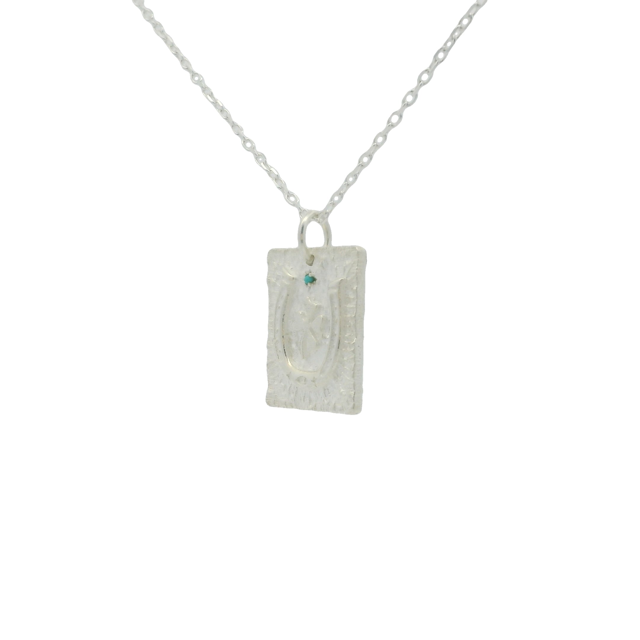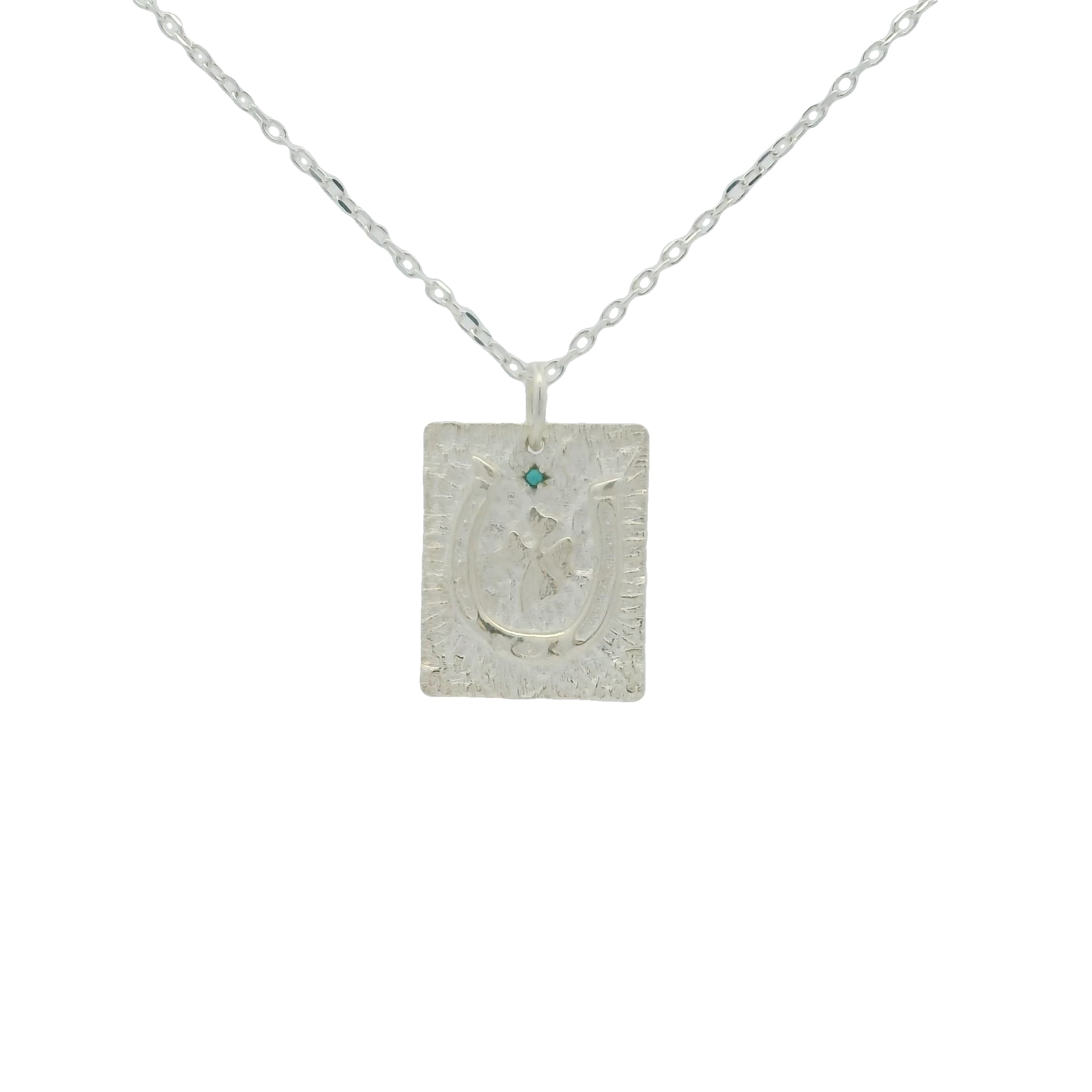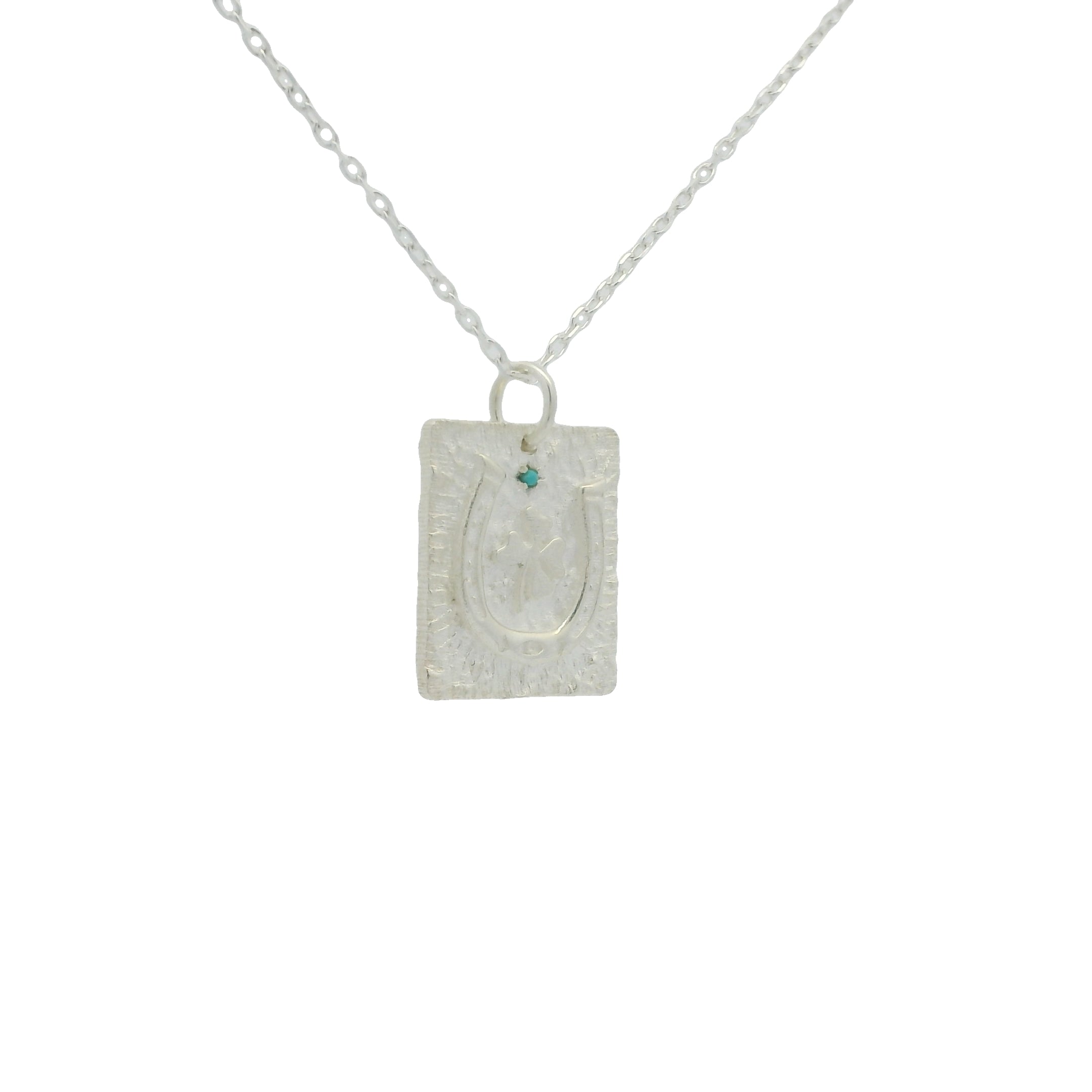 Collier en argent 925 fer à cheval trèfle et turquoise 42 cm