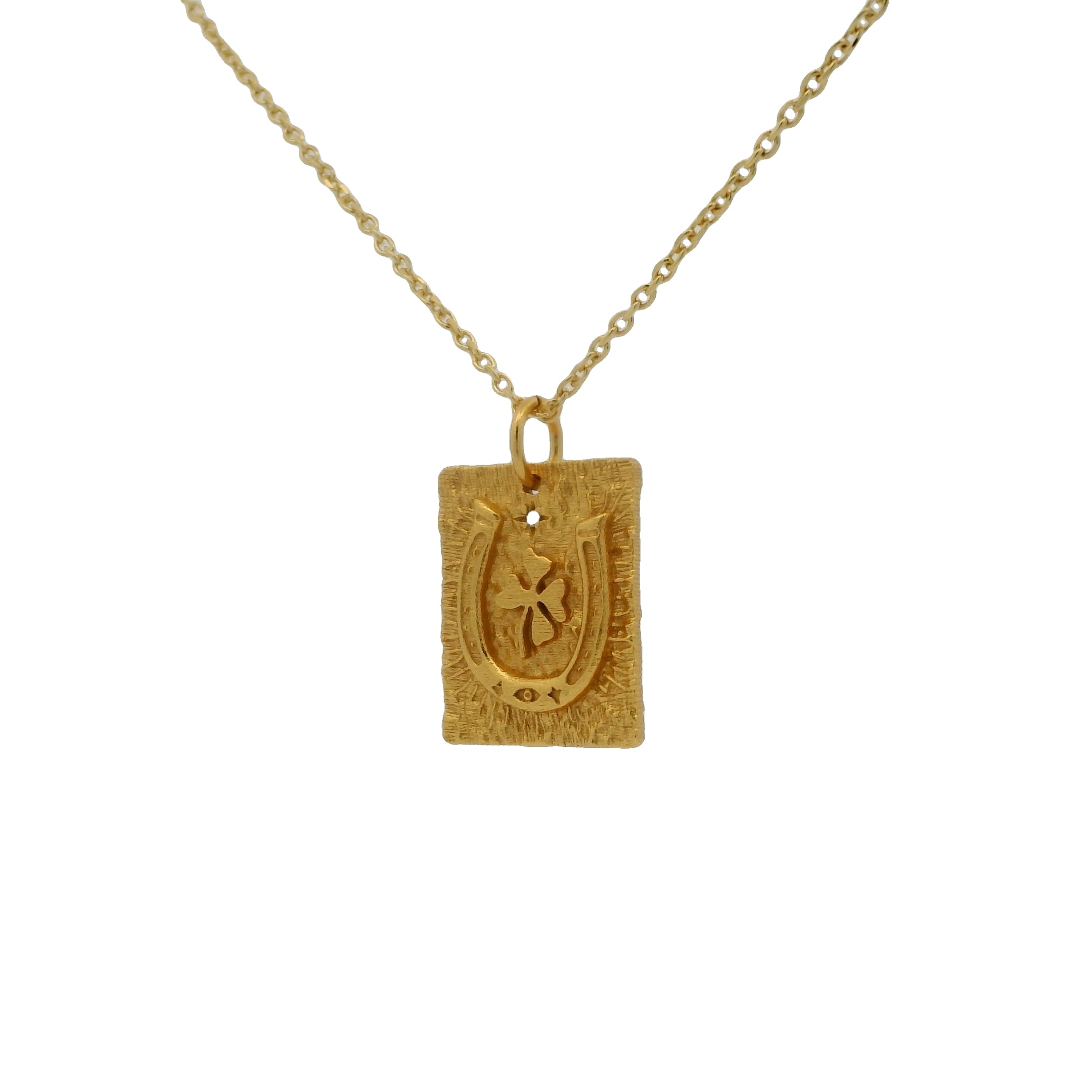 Collier doré plaque fer à cheval trèfle et zircon blanc 42 cm