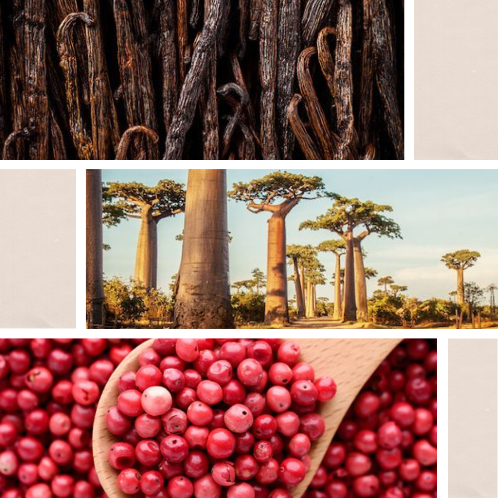 Notes de tête : Baies roses, Citron, Muscade