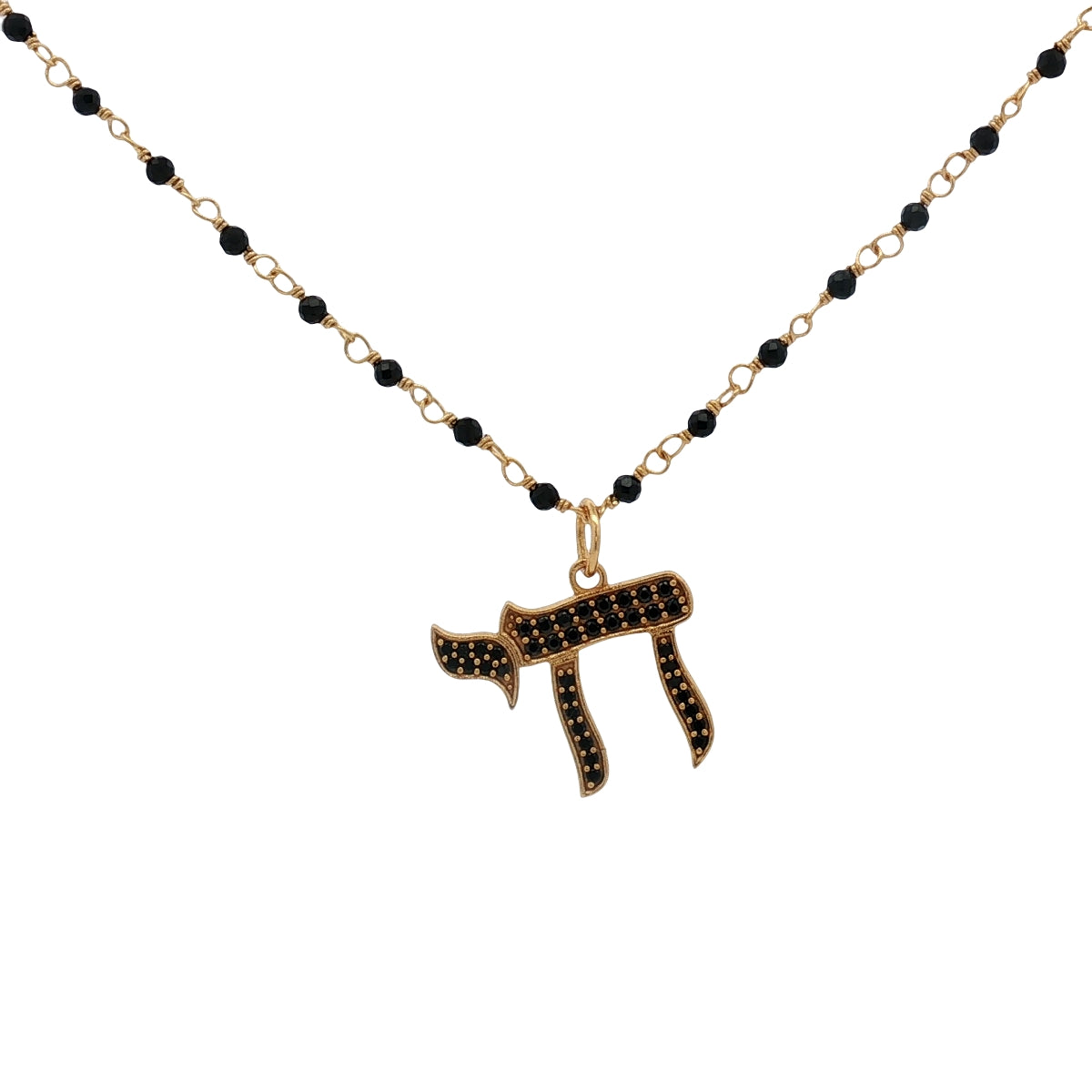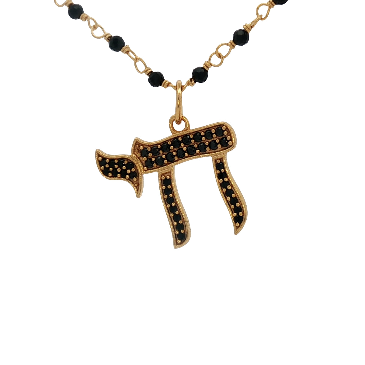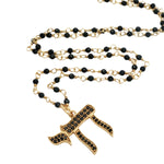 Collier doré Hai zircons noirs chaine rosary 42 cm