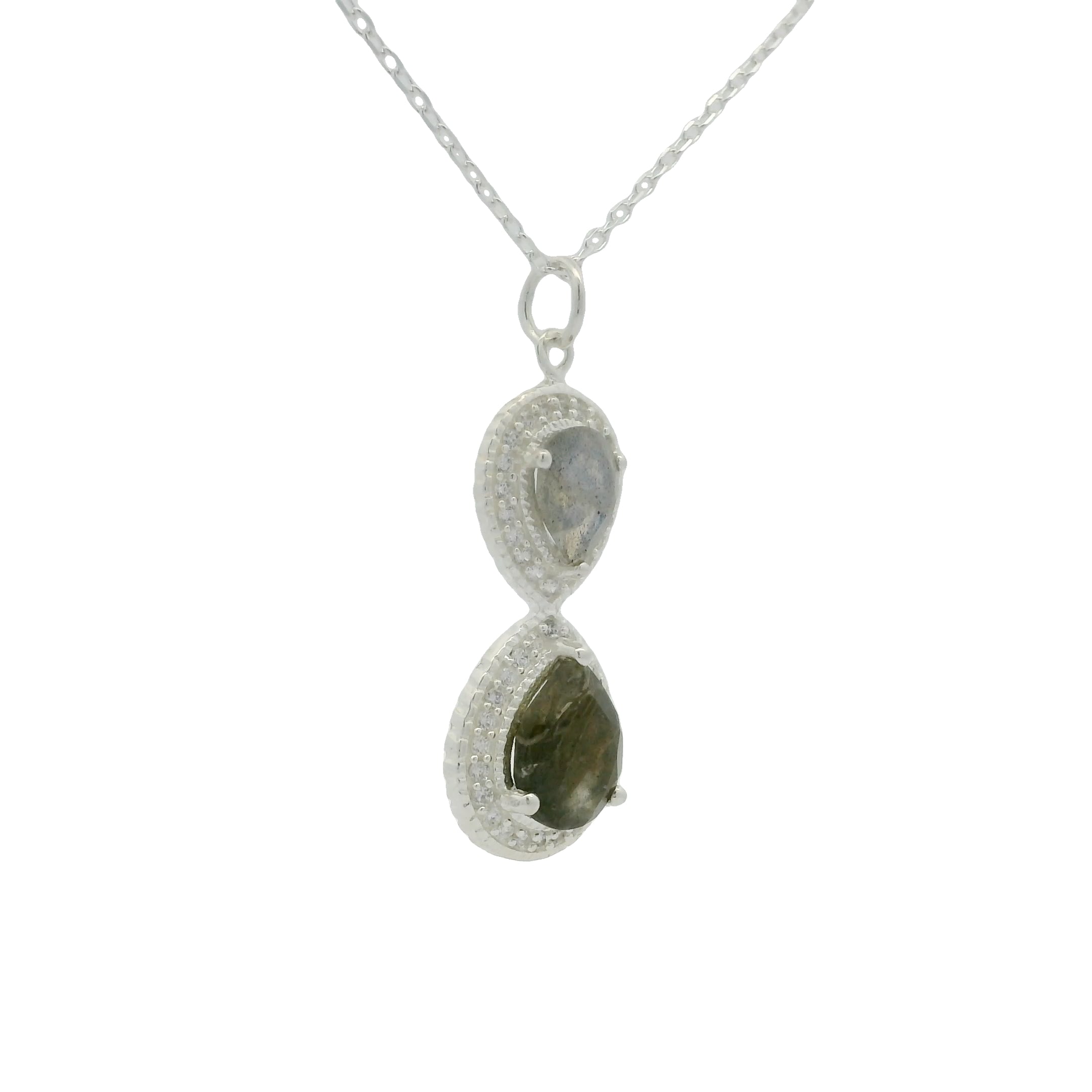 Collier argent 925 infini avec labradorite et zircons blancs 42 cm