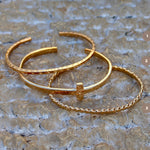 Bracelet jonc plat torsadé ouvert en laiton doré à l'or fin 18k