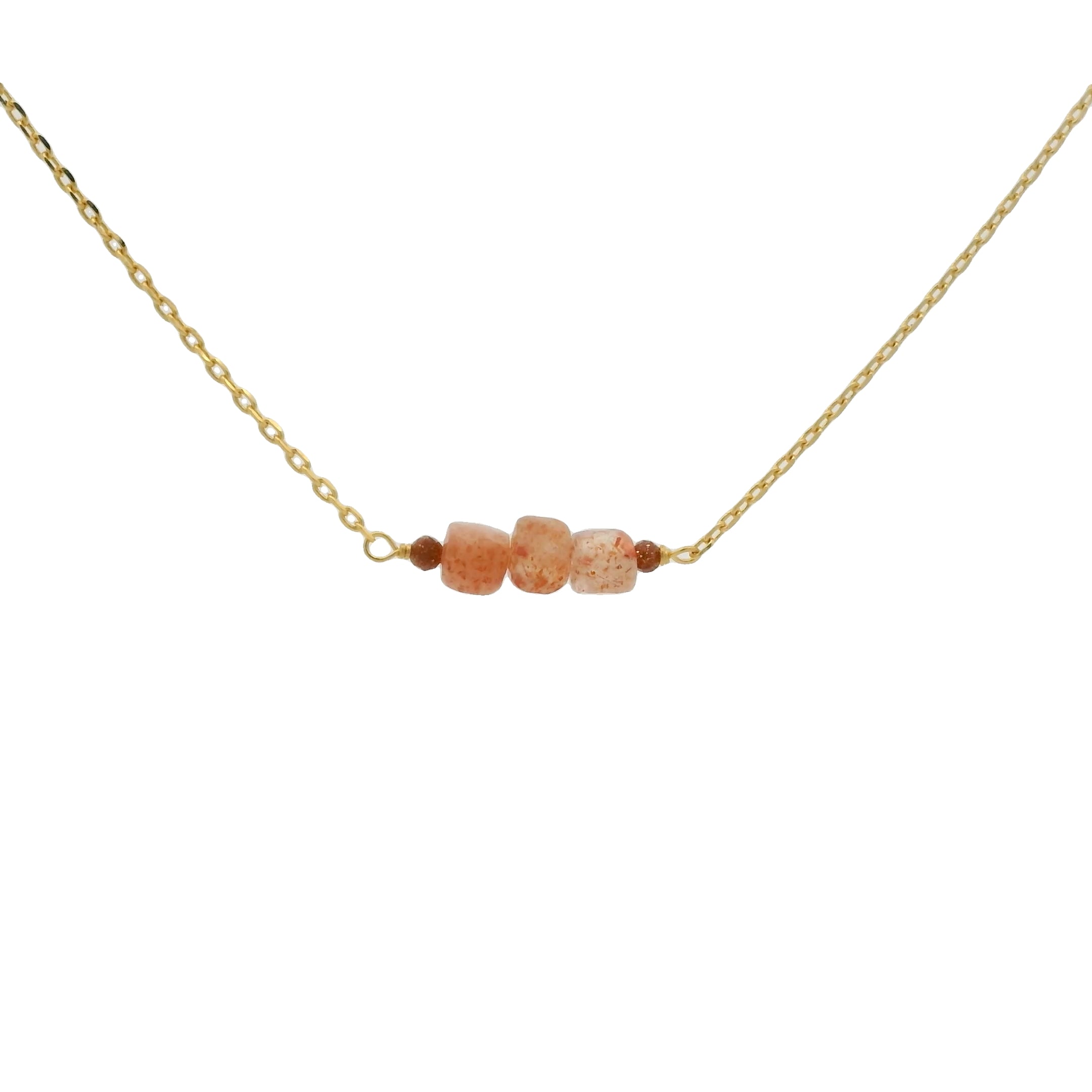 Collier doré trio de pierre de lune pêche carrées 40 cm