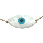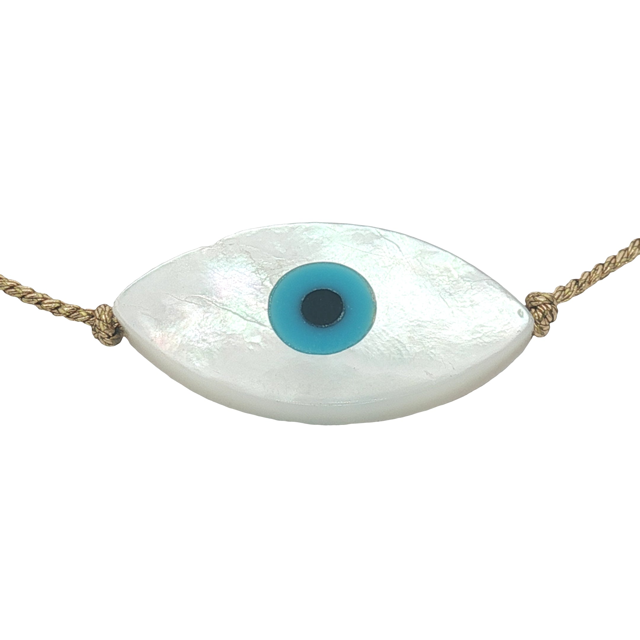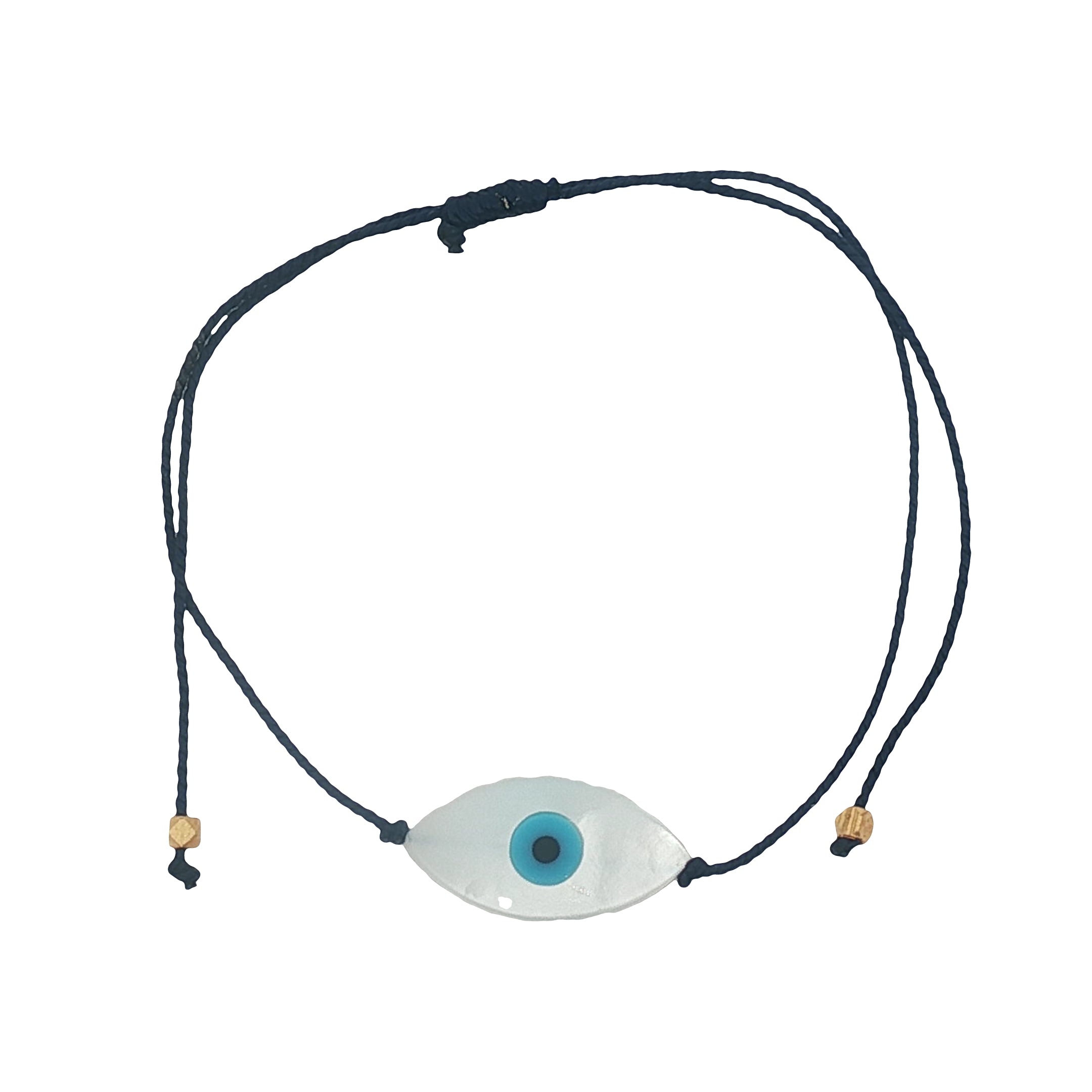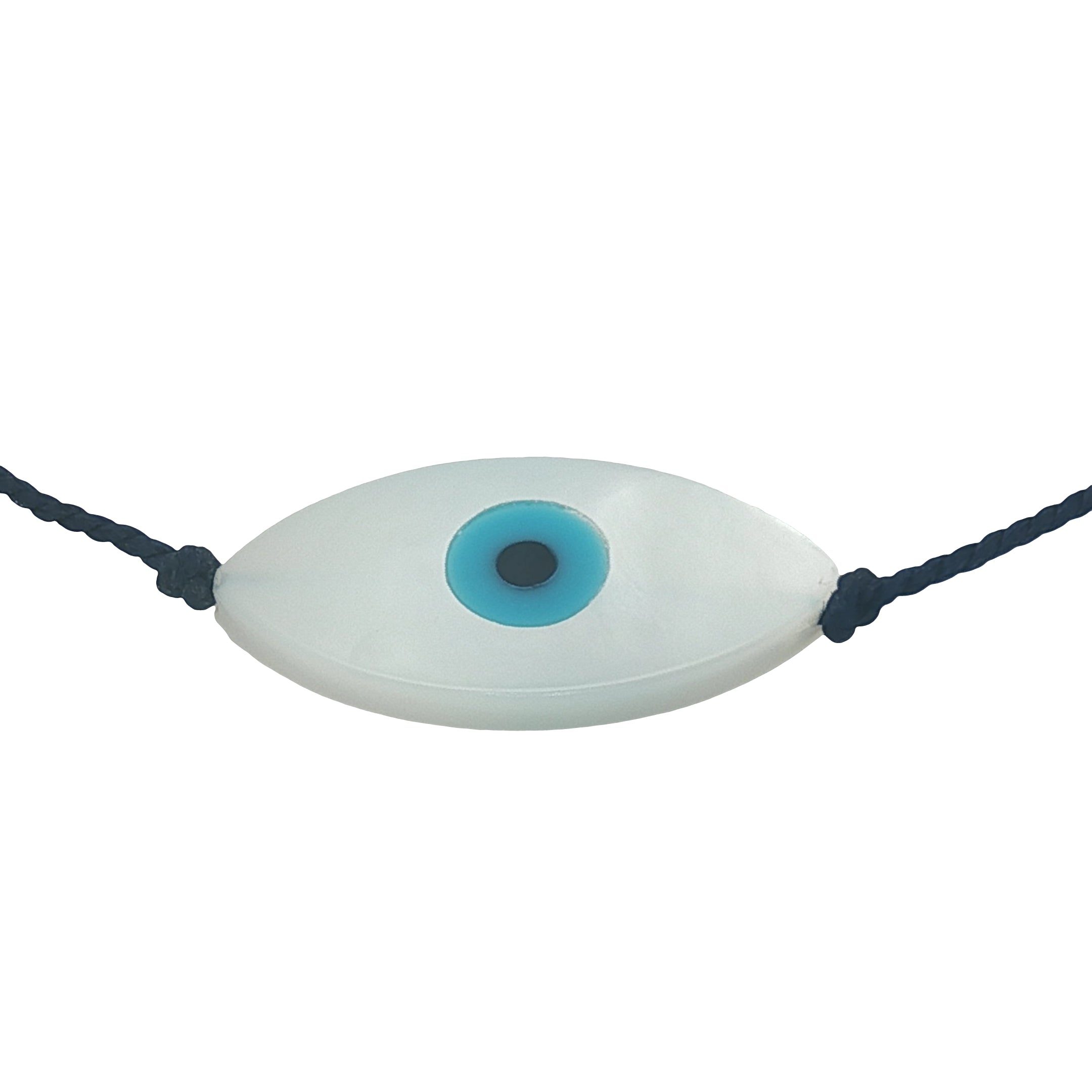 Bracelet fil bleu marine ou doré et oeil ovale en nacre de 2cm