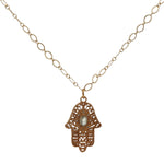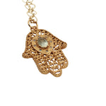 Collier doré main de Fatma texturée prehnite 50 cm