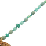 Collier doré main de Fatma gravée avec turquoise et perles vertes 75 cm