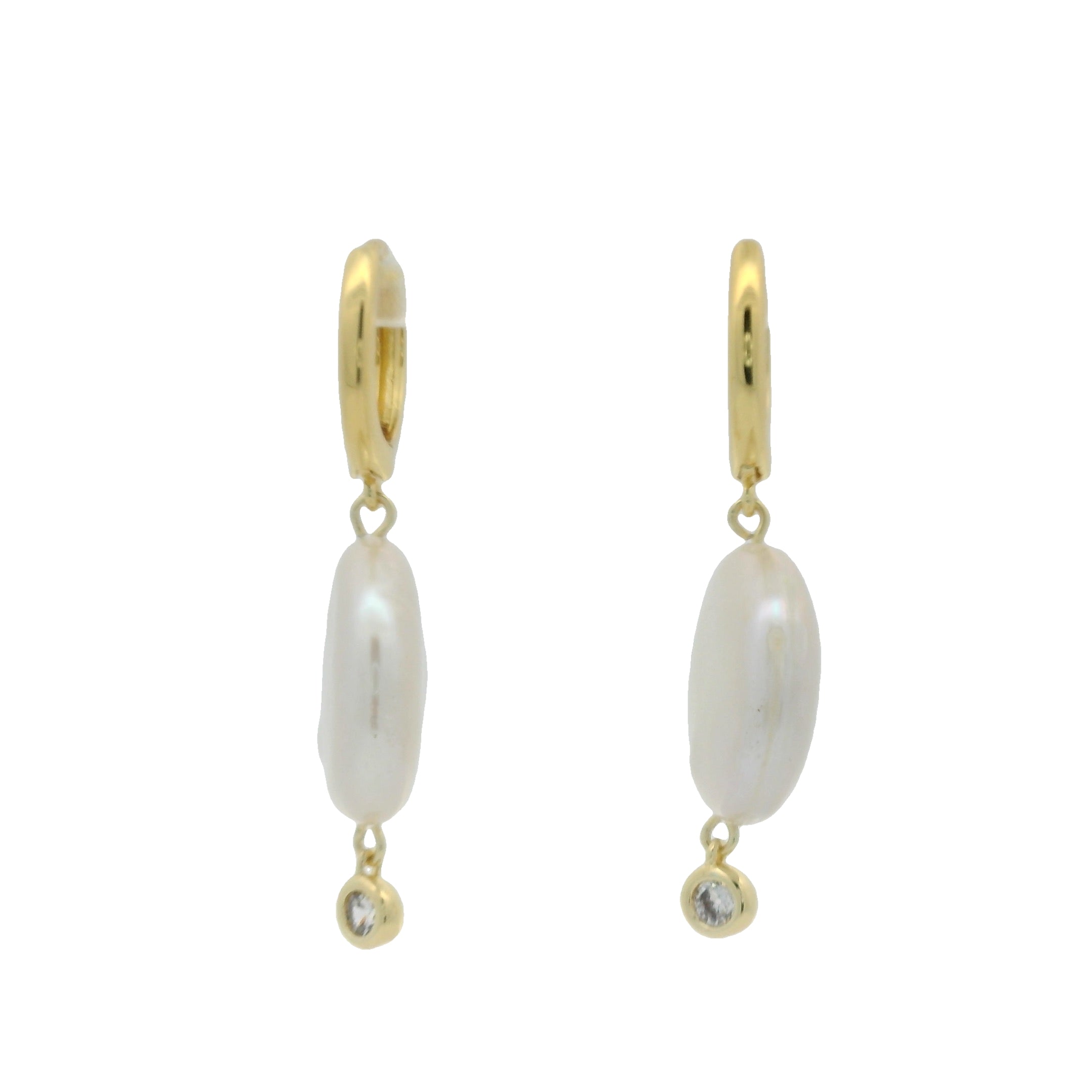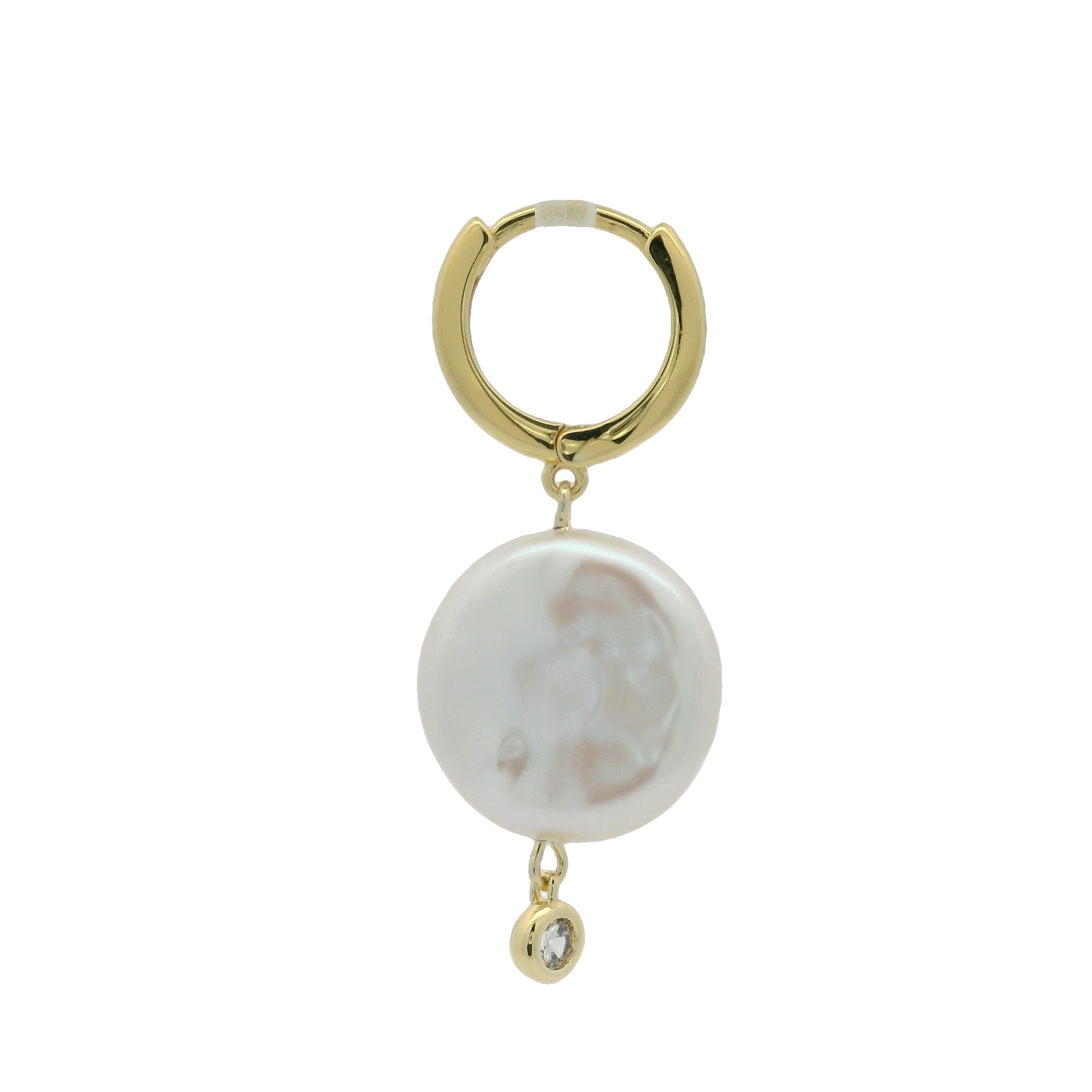 Mini créoles dorées avec perle en nacre et pampille en zircon blanc