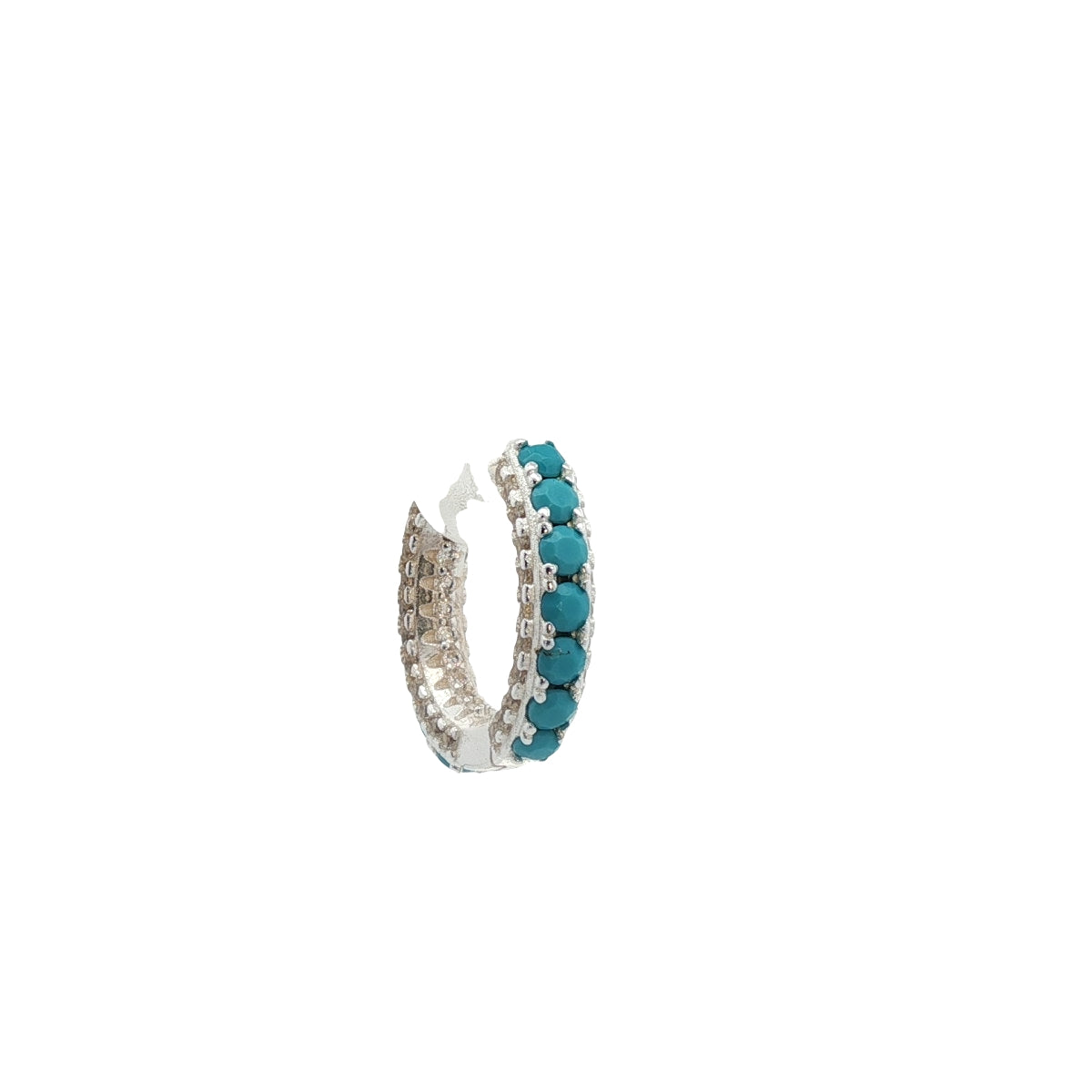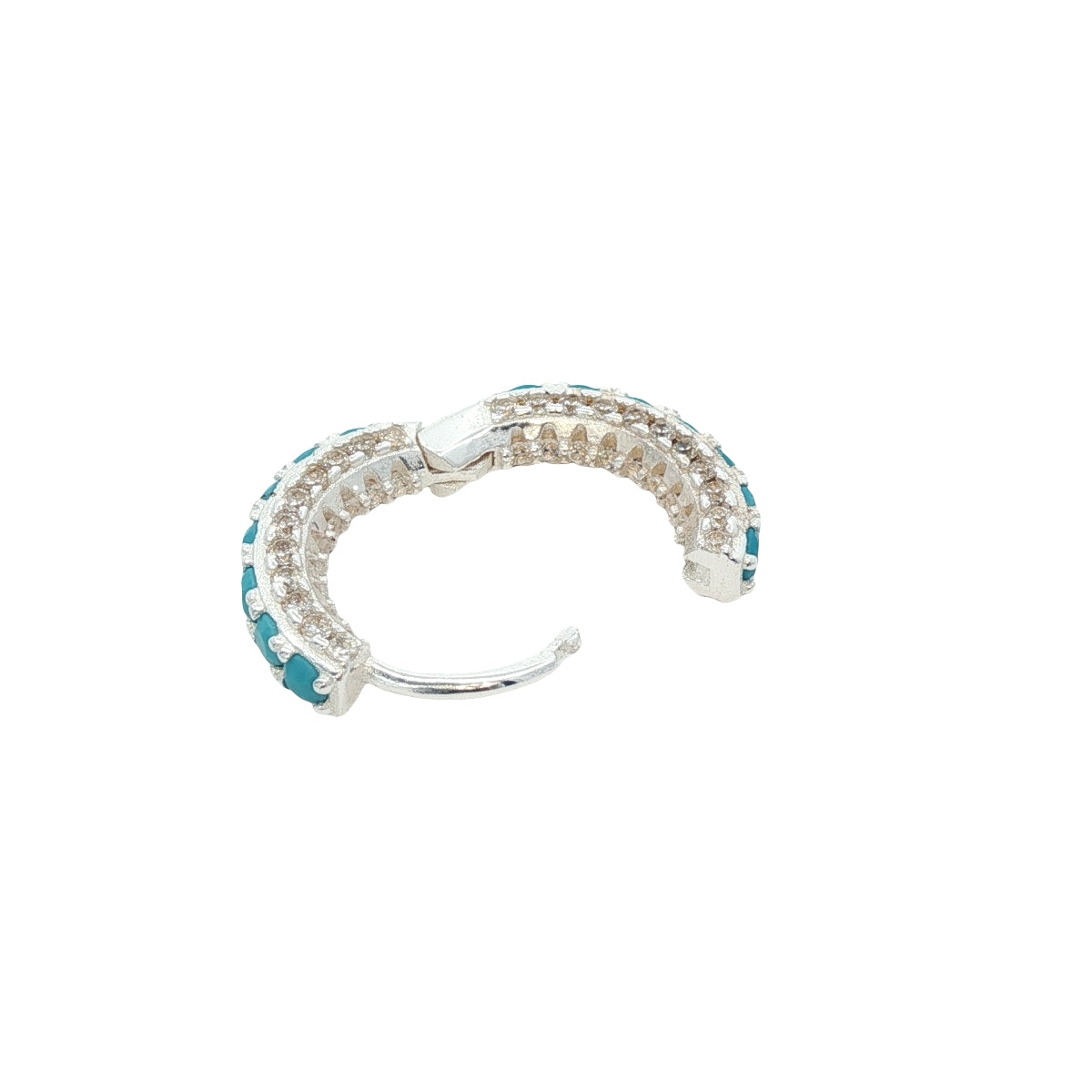 Mini créole fermée argent 925 turquoise et zircons 15 mm