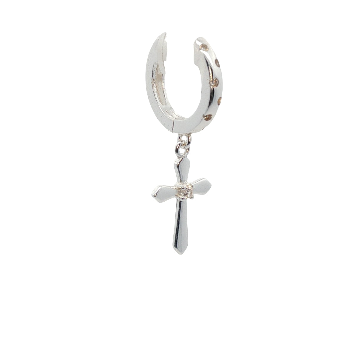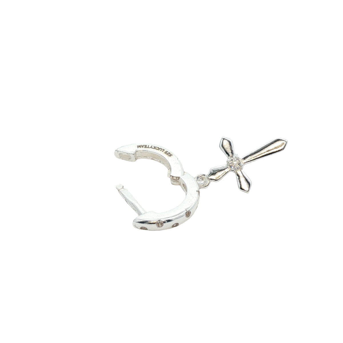 Mini créole fermée argent 925 avec zircons et pampille croix