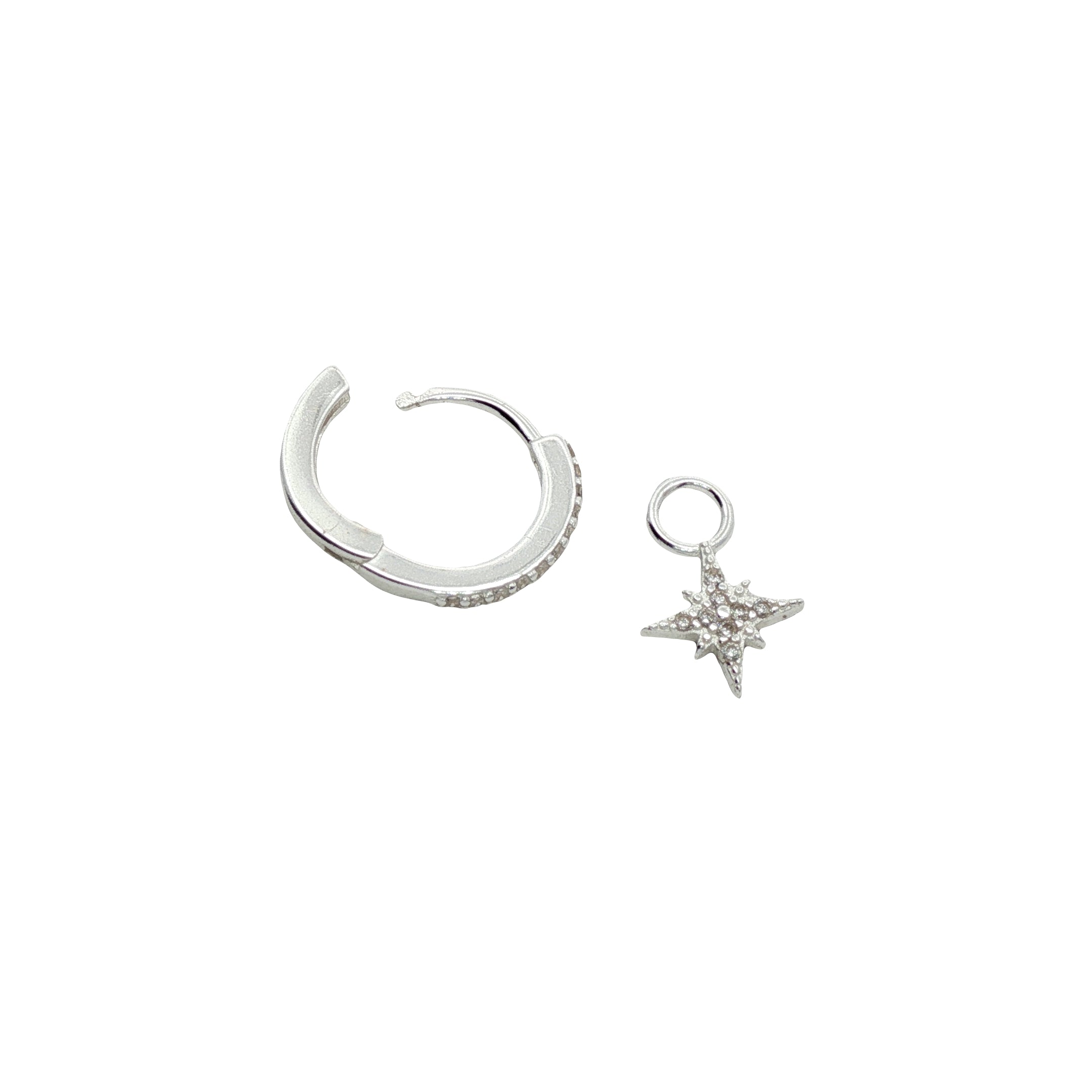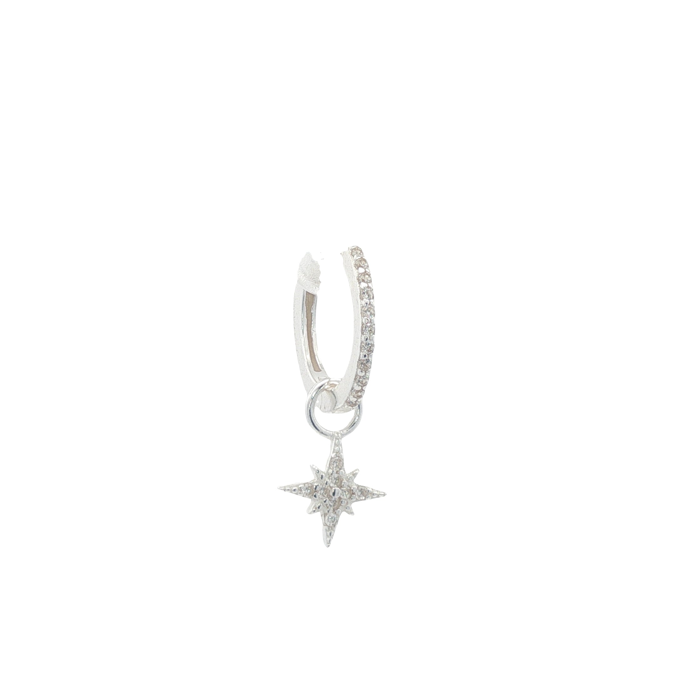 Mini créole fermée argent 925 pampille étoile des vents zircons