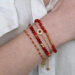 Bracelet doré avec agate rouge et perles dorées