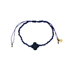Bracelet doré sur cordon marine trèfle en lapis lazulis facettée