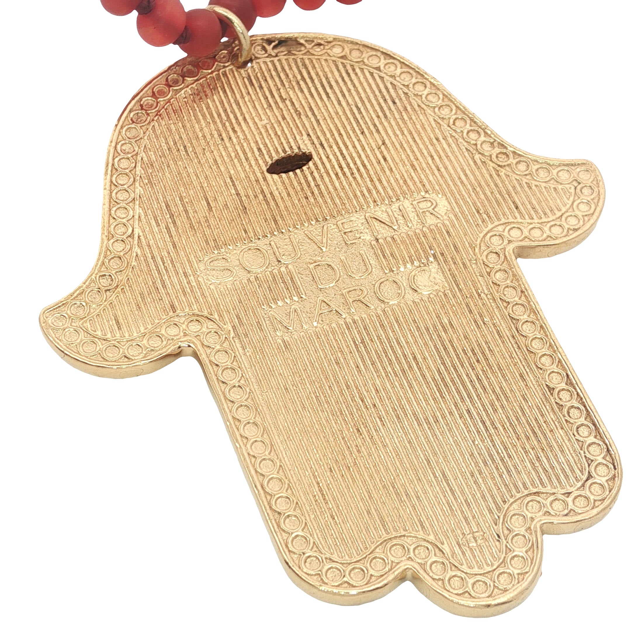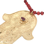 Collier doré en corne rouge main de Fatma avec onyx rouge 75 cm