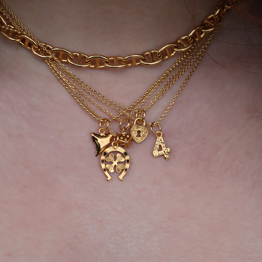 Collier en laiton doré à l'or fin 18k et pendentif dé porte bonheur