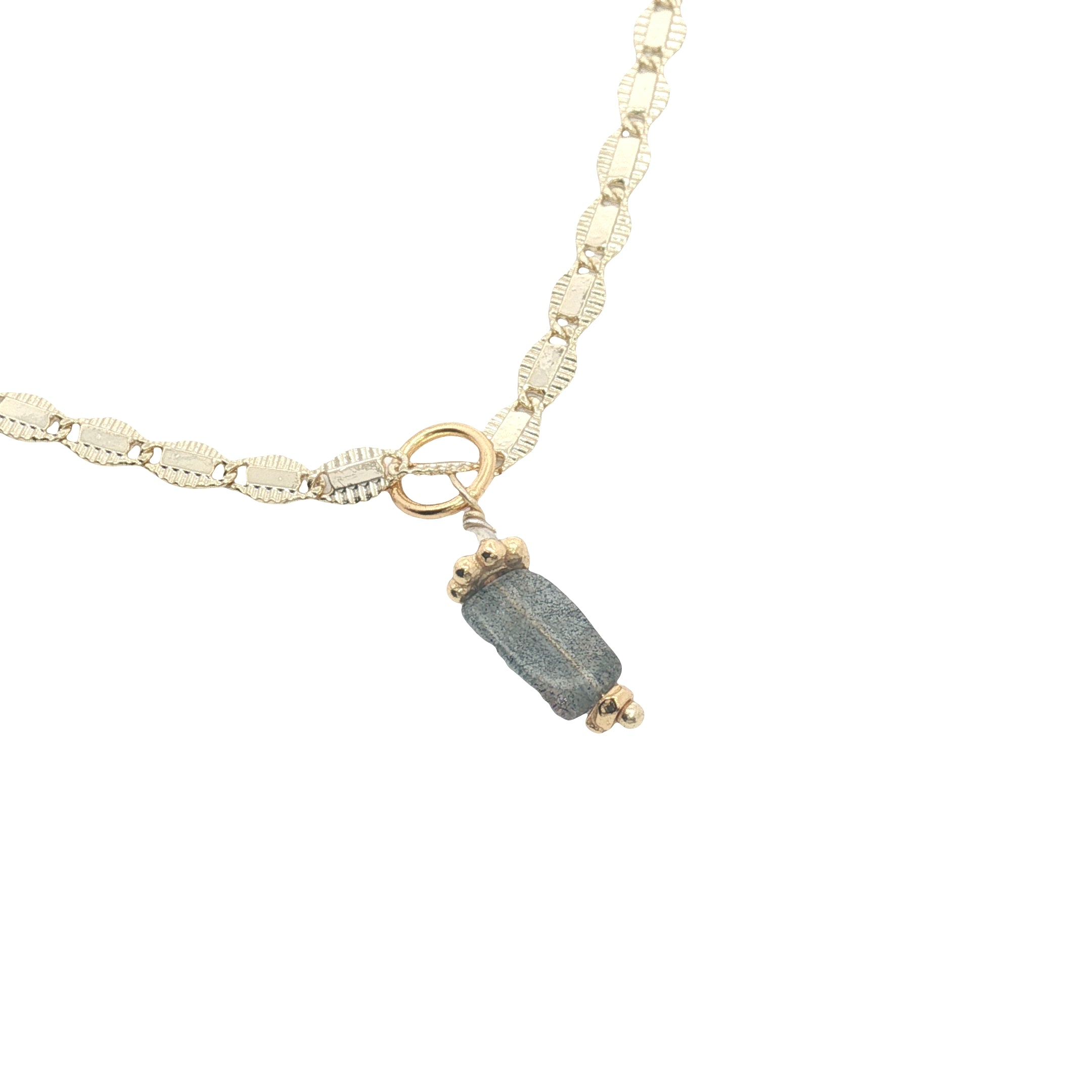 Collier doré labradorite rectangle avec pierre de lune 38 cm