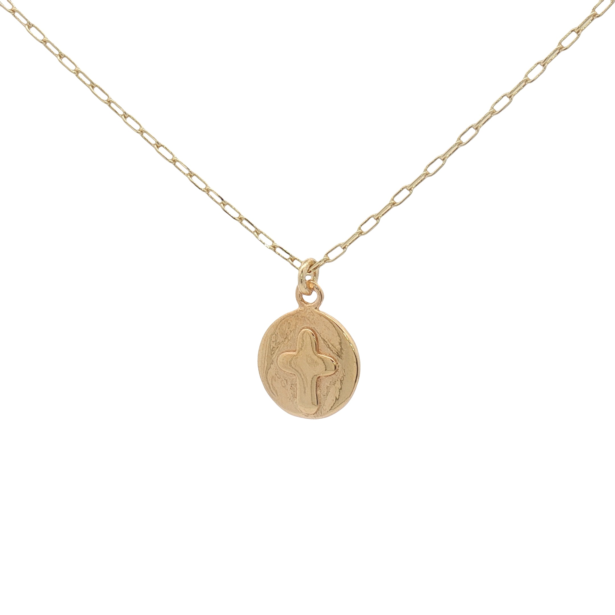Pendentif médaille ronde avec croix en relief : 11 mm