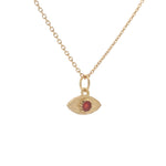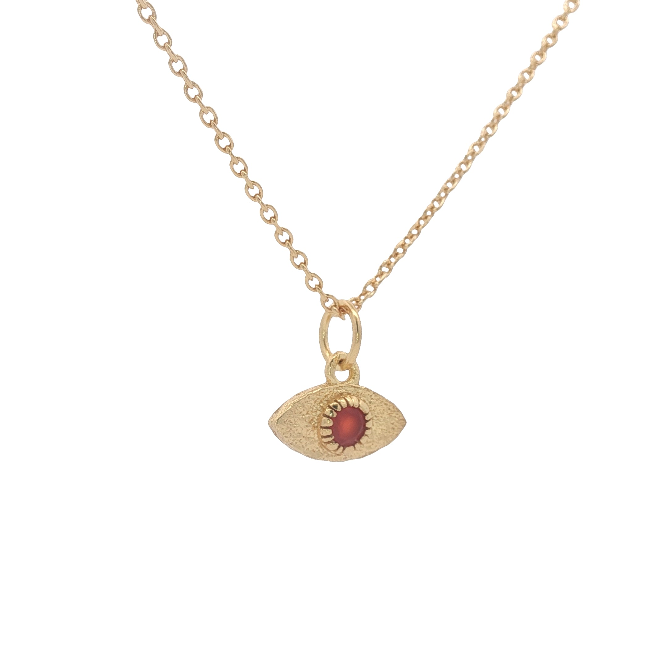 Collier doré petit oeil martelé onyx rouge 42 cm