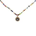 Collier doré perles multicolores oeil bleu zircons 38 cm