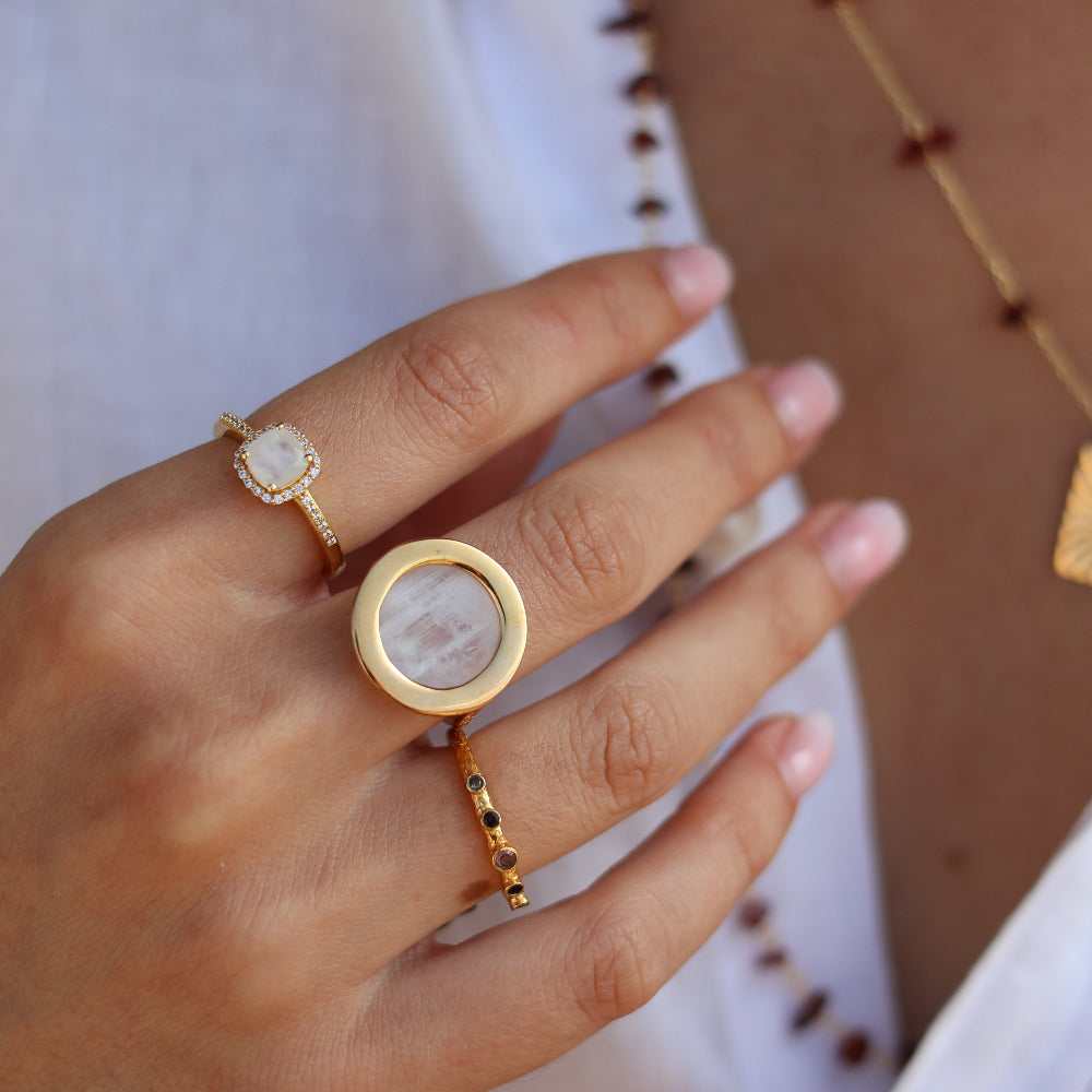 Bague dorée pierre ronde plate
