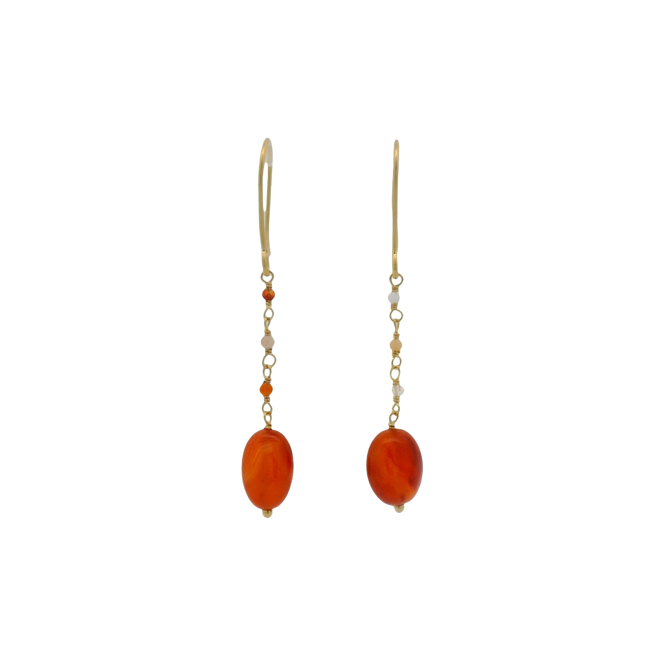 Boucles d'oreilles pendantes cornaline et pierre de lune pêche