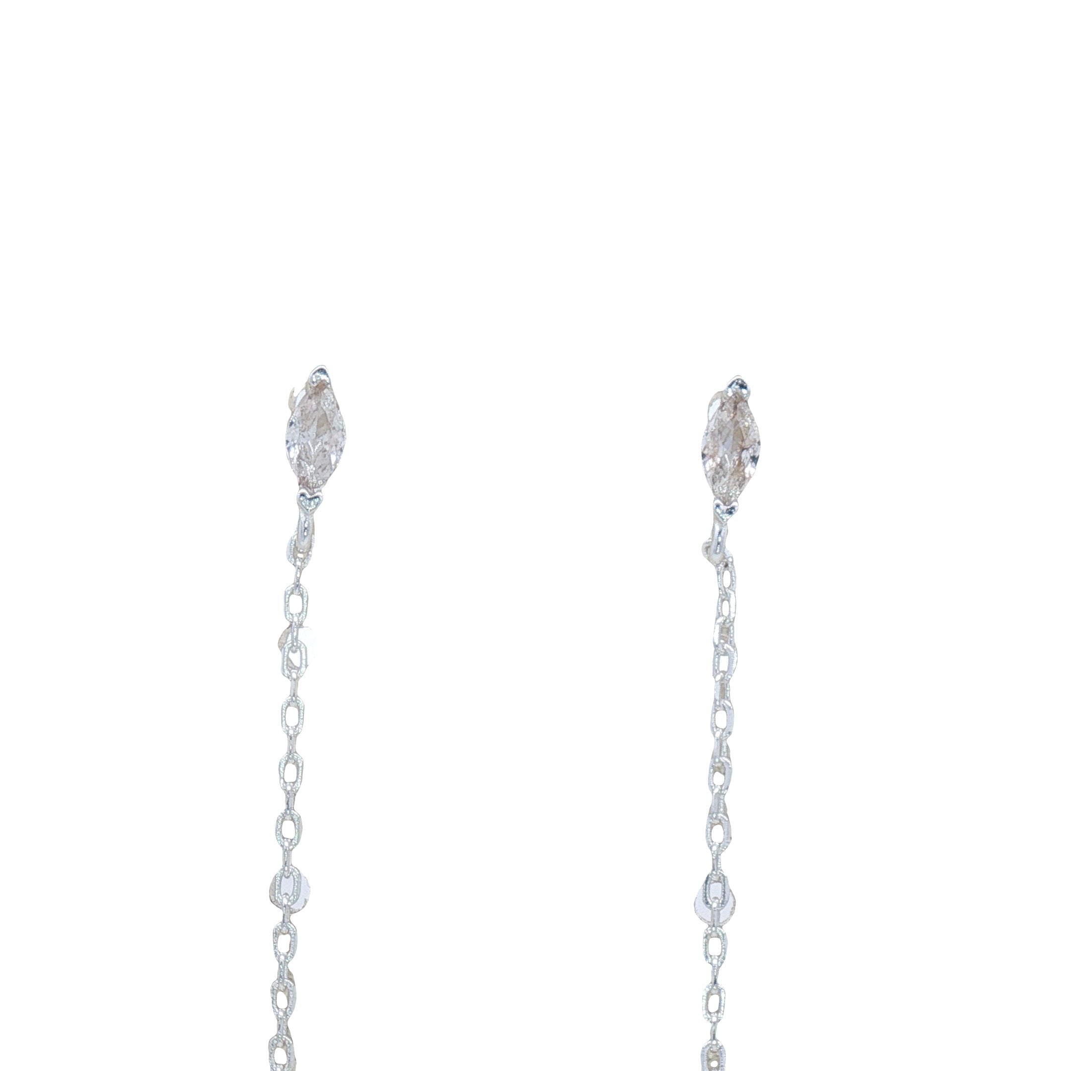 Boucles d'oreilles pendantes argent 925 avec zircon navette et chaine