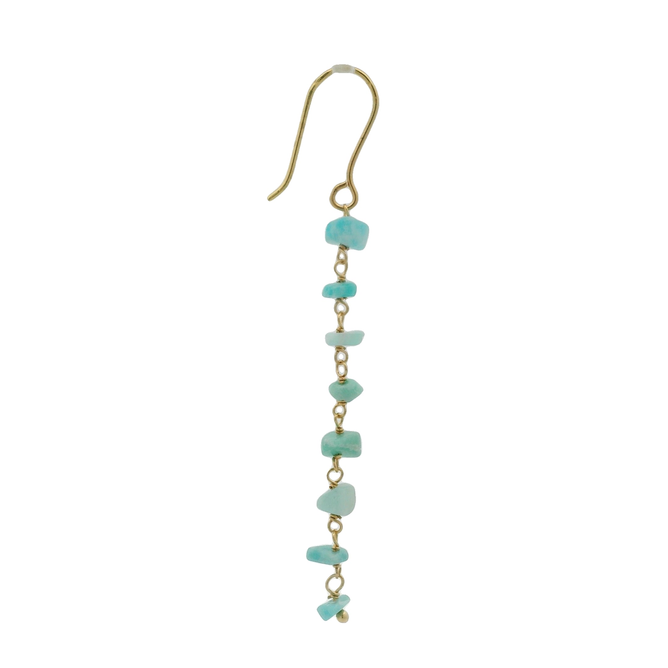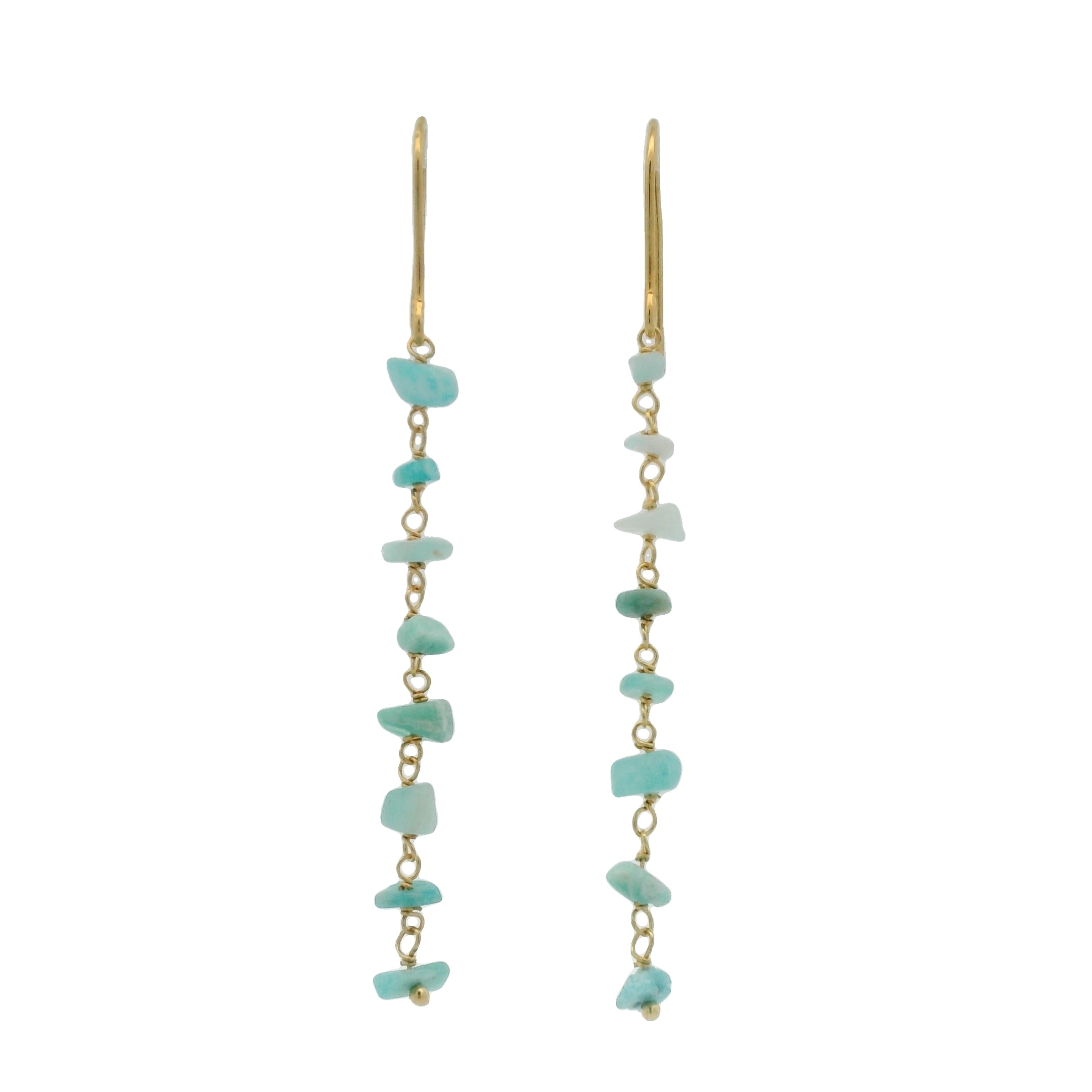 Boucles d'oreilles dorées pendantes et amazonite brute
