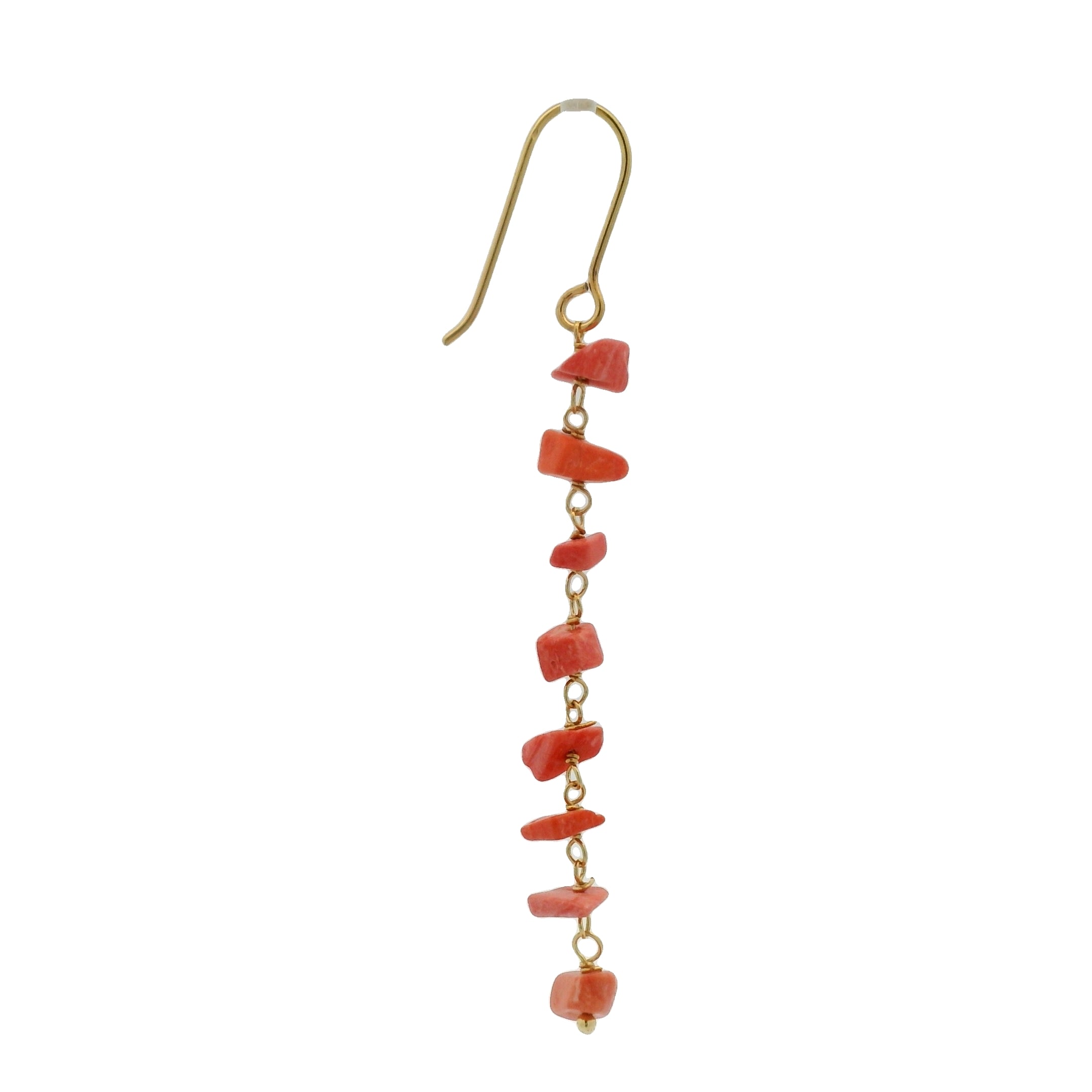 Boucles d'oreilles dorées pendantes et pierres brutes corail