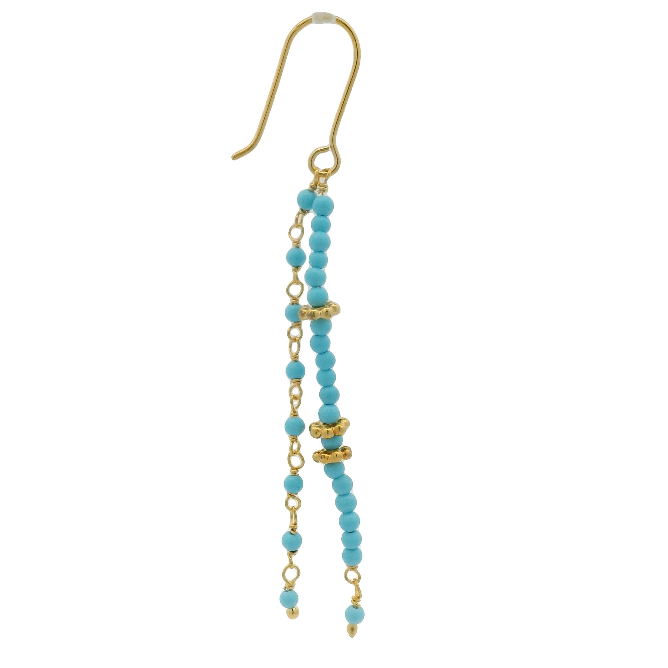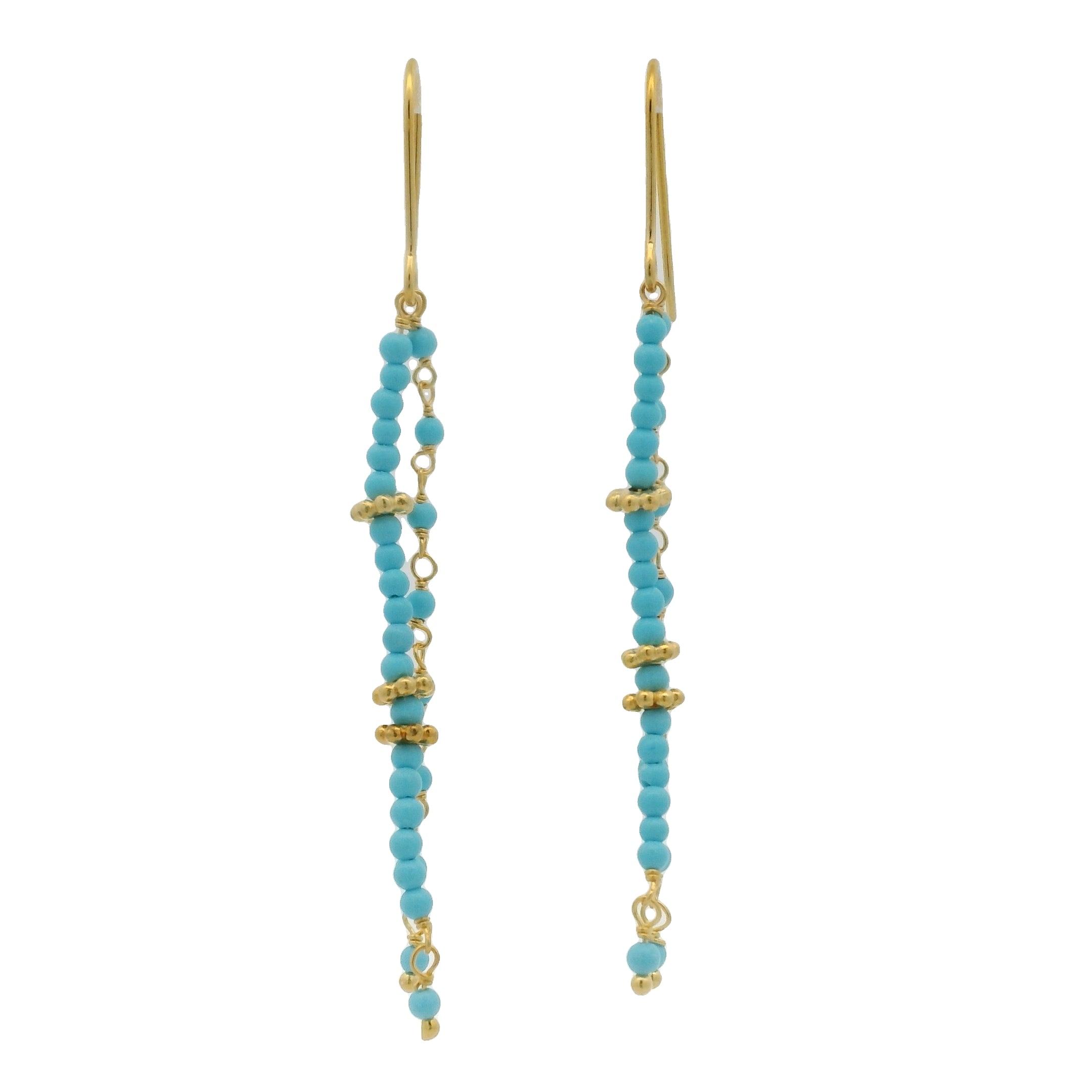 Boucles d'oreilles dorées pendantes turquoise et couronnes dorées