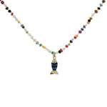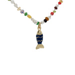 Pendentif poisson émail bleu avec zircons blancs : 15 mm x 6 mm