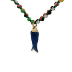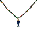 Collier doré perles multicolores poisson bleu 38 cm