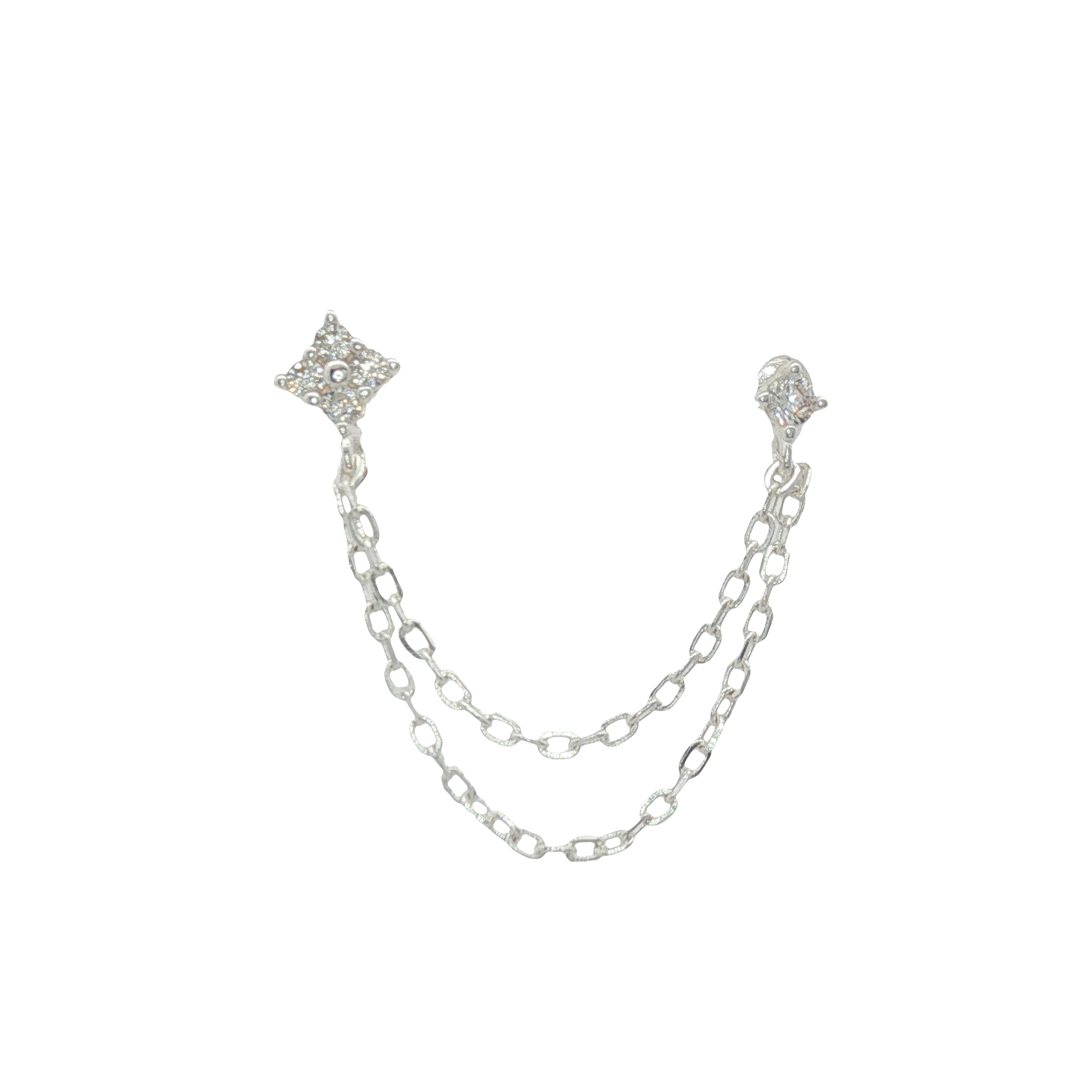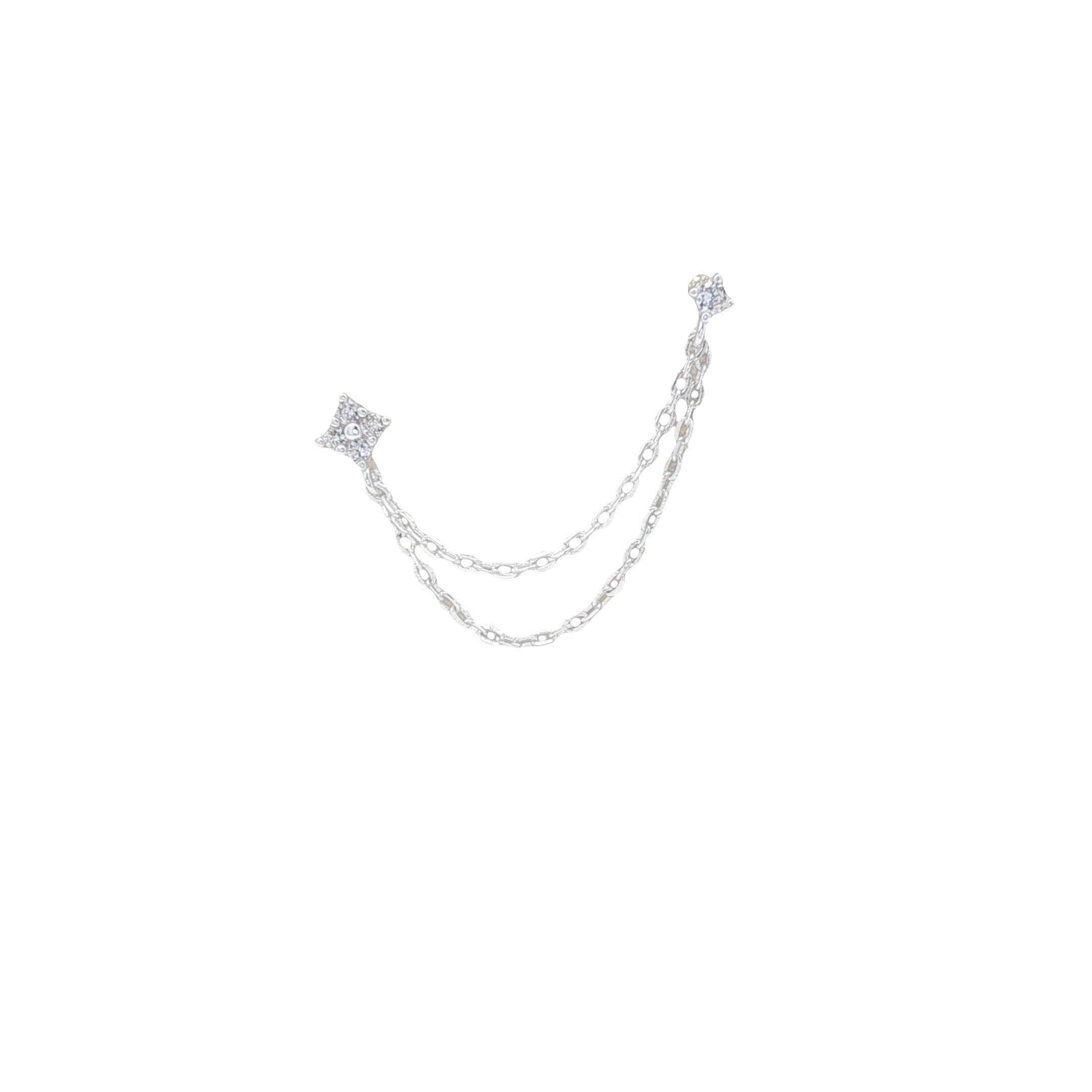 Boucle d'oreilles argent 925 double étoile zircons avec double chainette