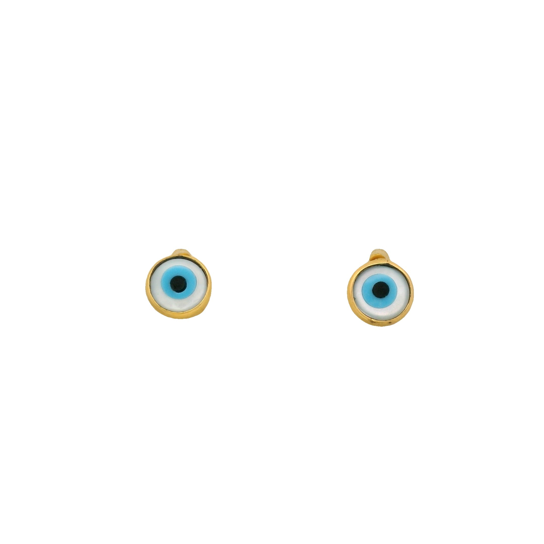 Boucles d'oreilles puces dorées oeil rond en nacre