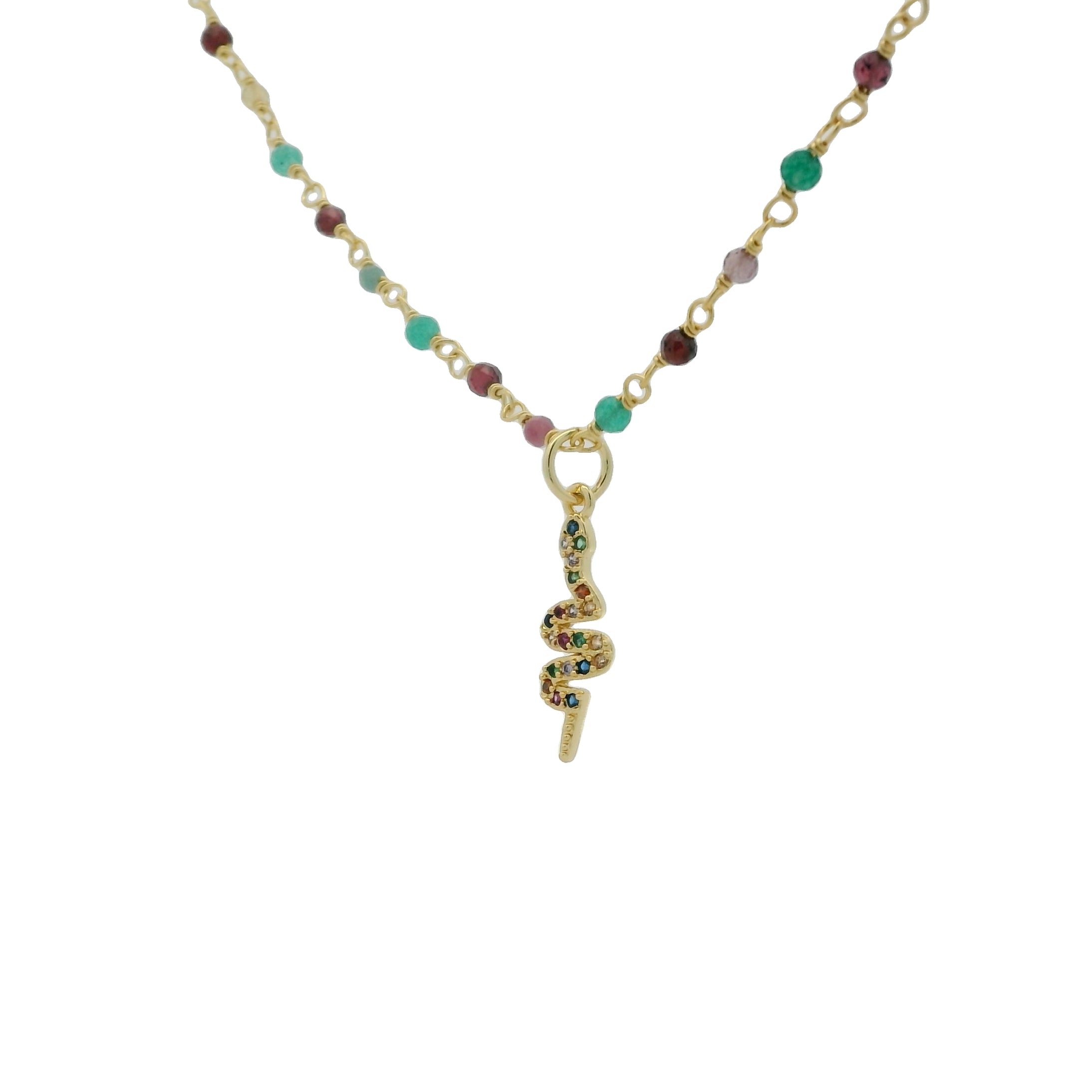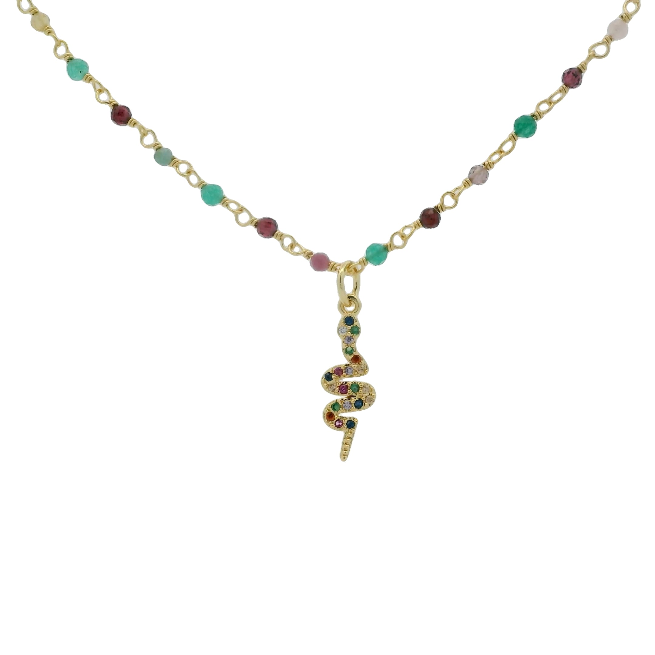 Collier doré rosary onyx verte tourmaline et serpent zircons colorés 42 cm