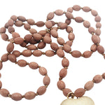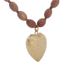 Collier doré coeur bombé brossé perles bois marron 90 cm