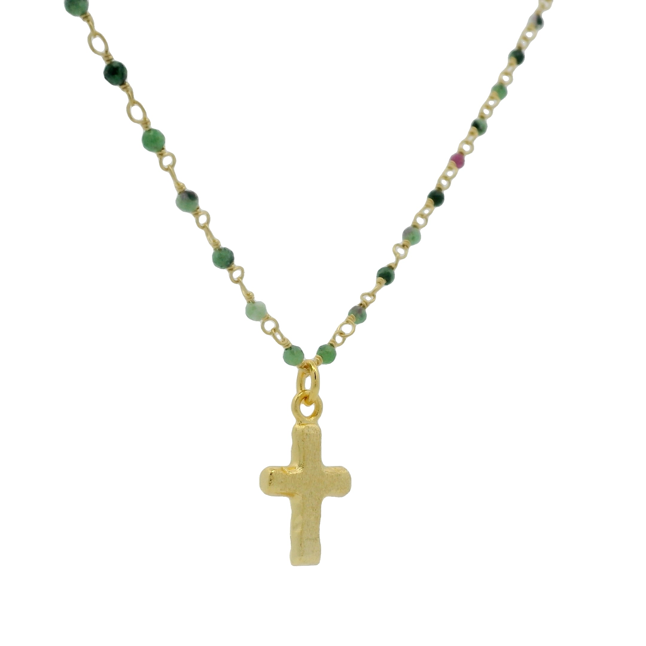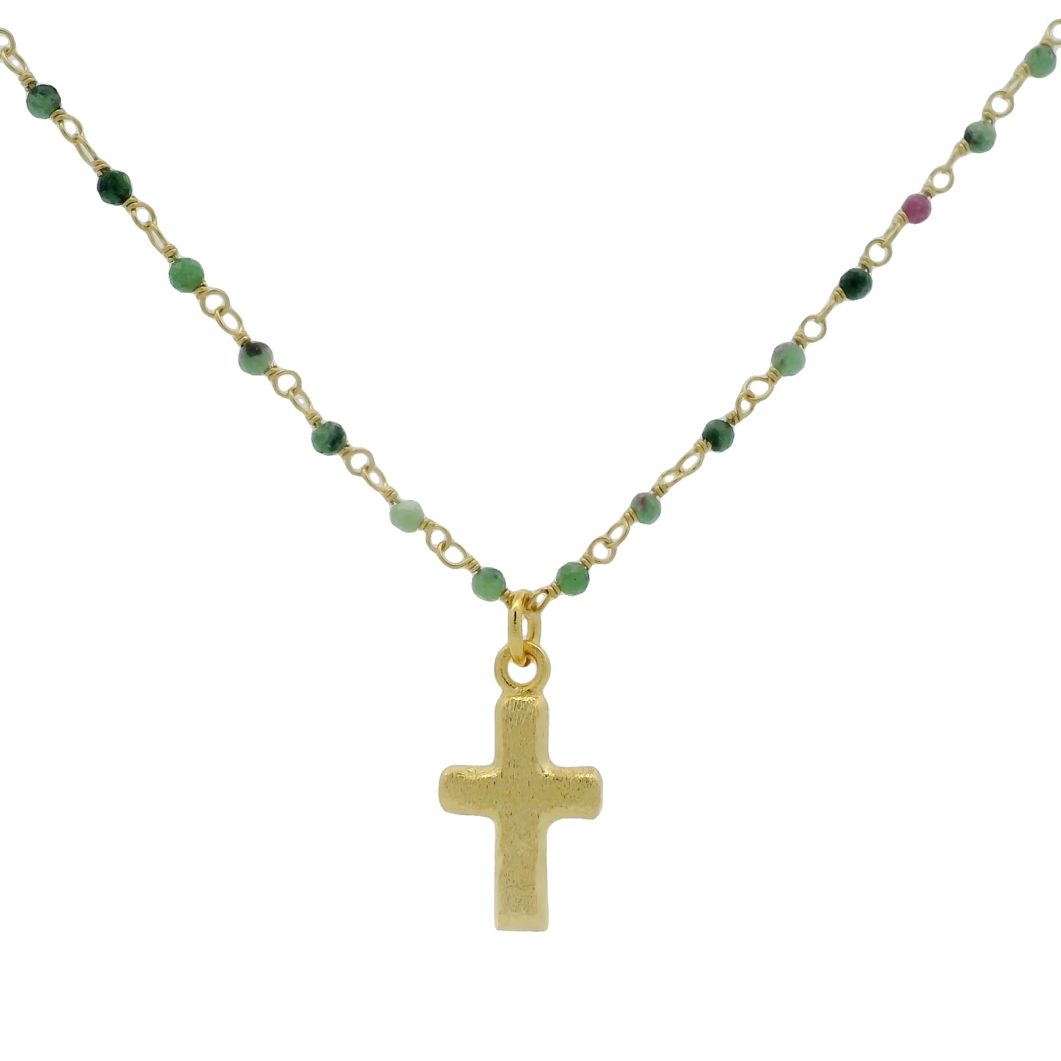Sautoir doré santa maria rubis zoisite et croix brossé 75cm