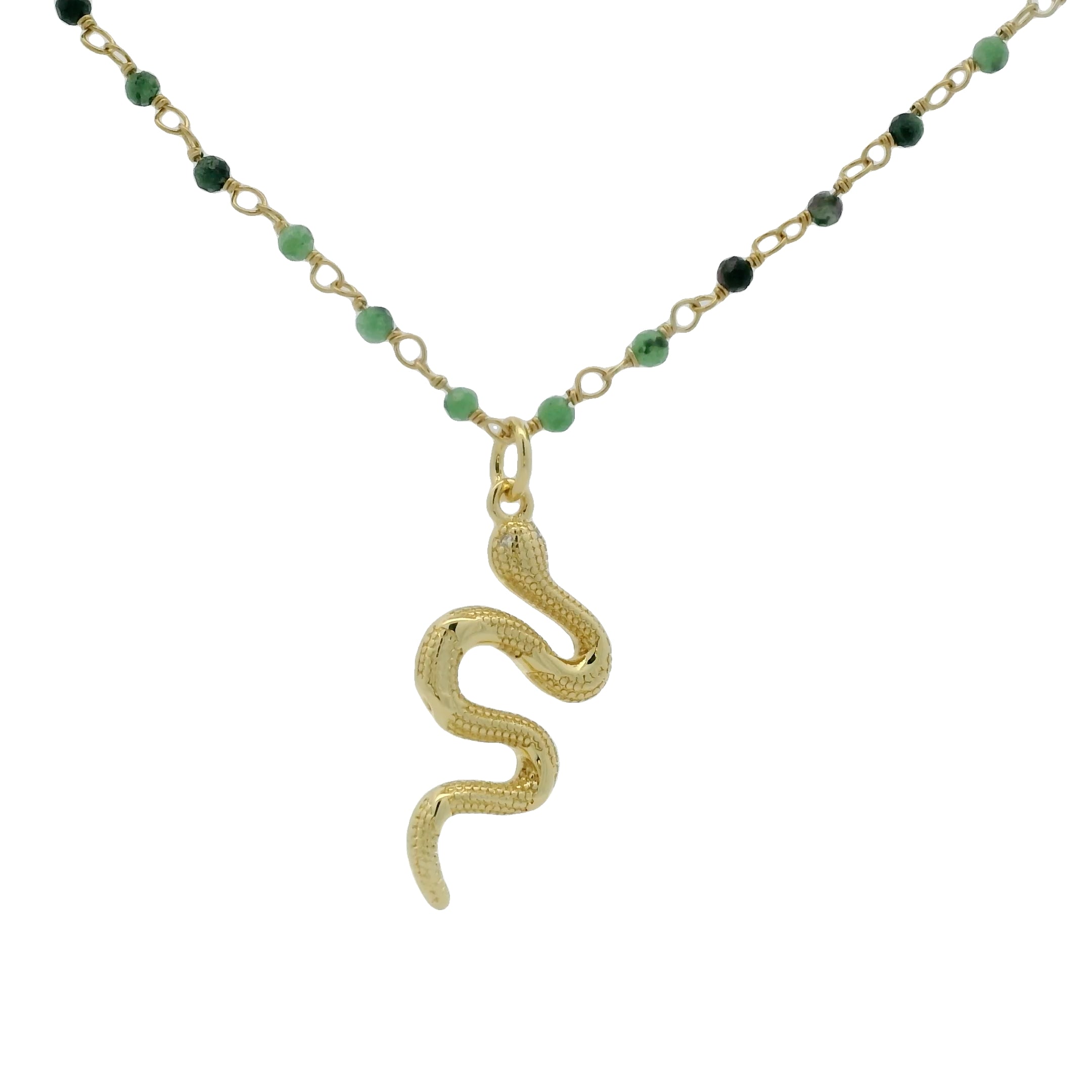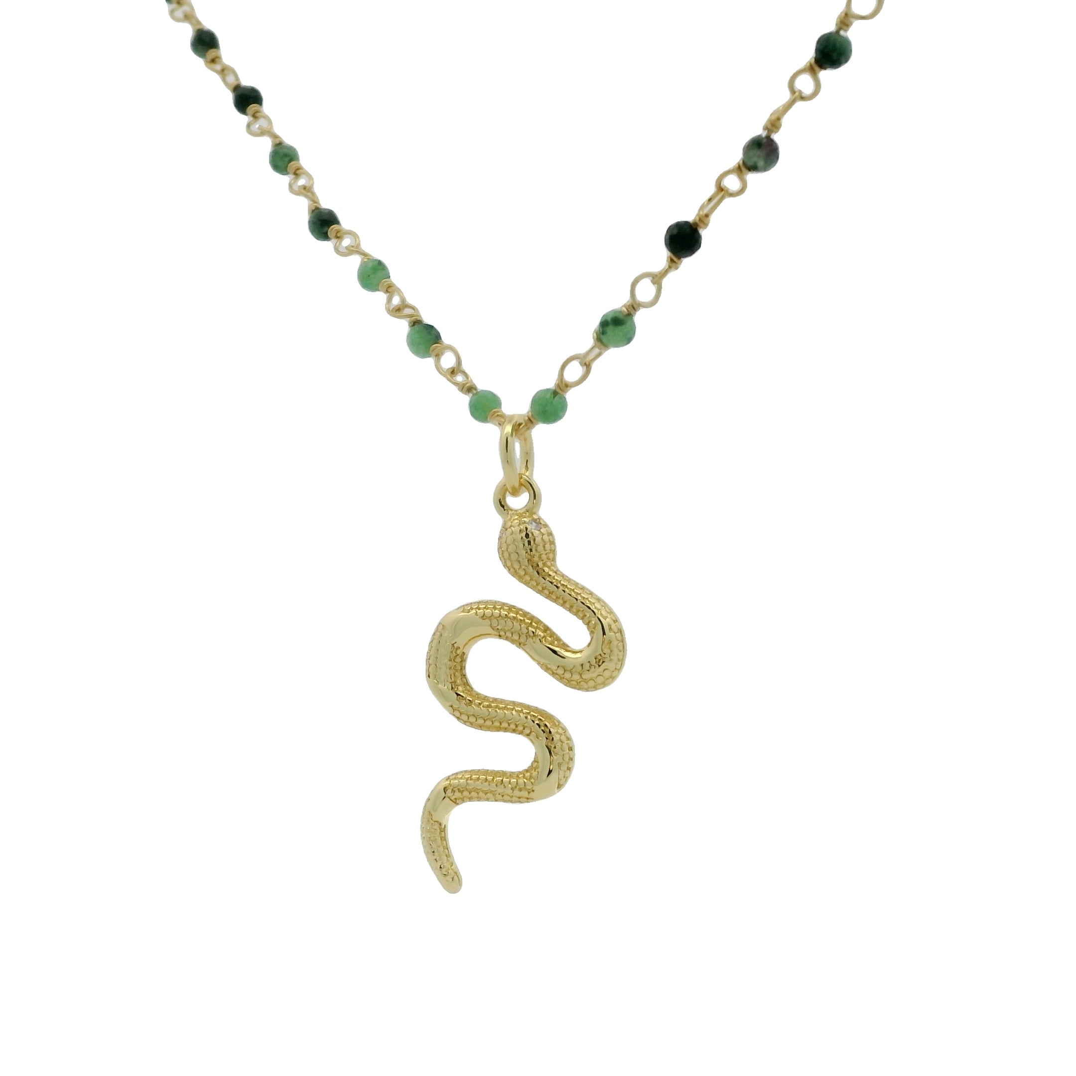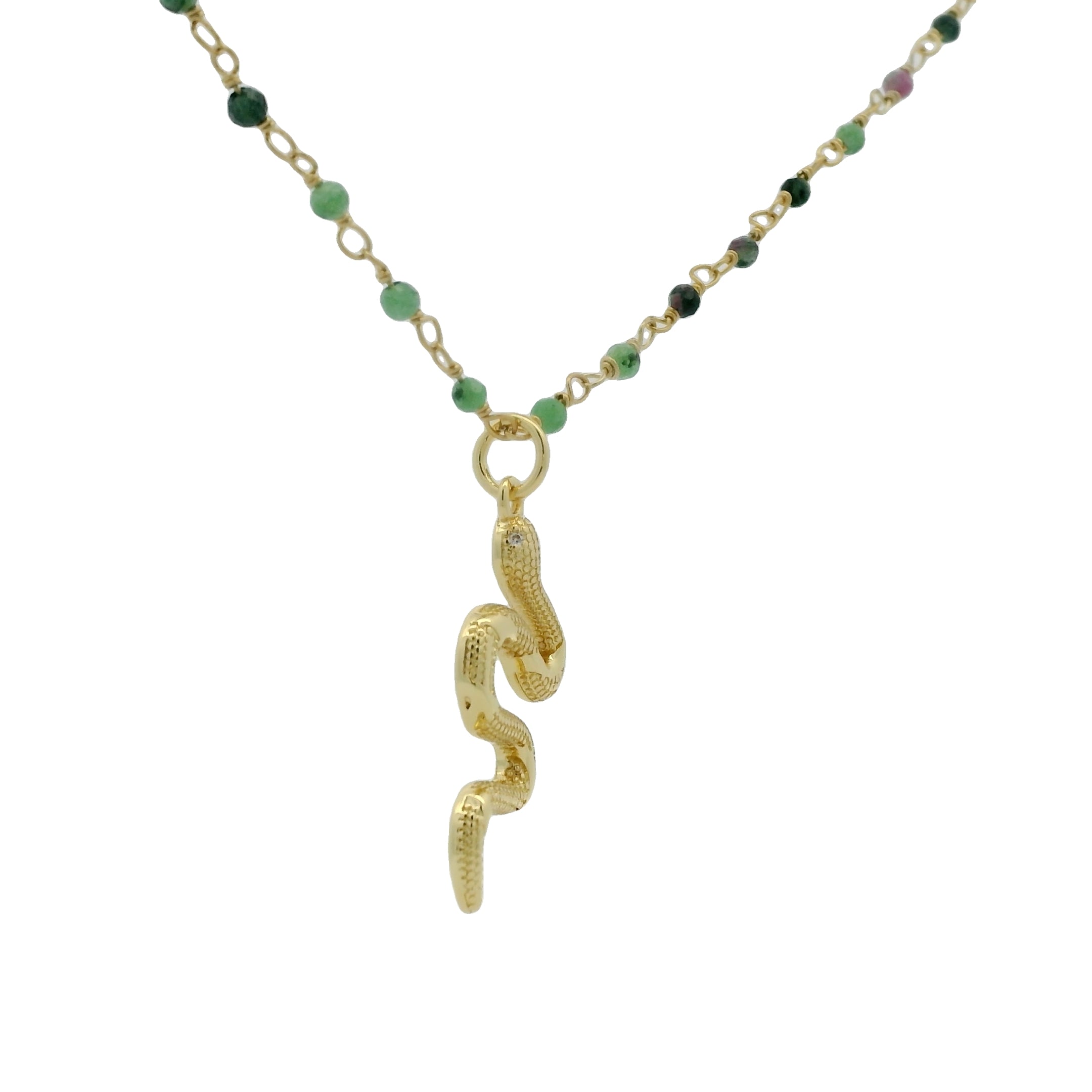Sautoir doré rosary rubis zoisite et serpent 75cm