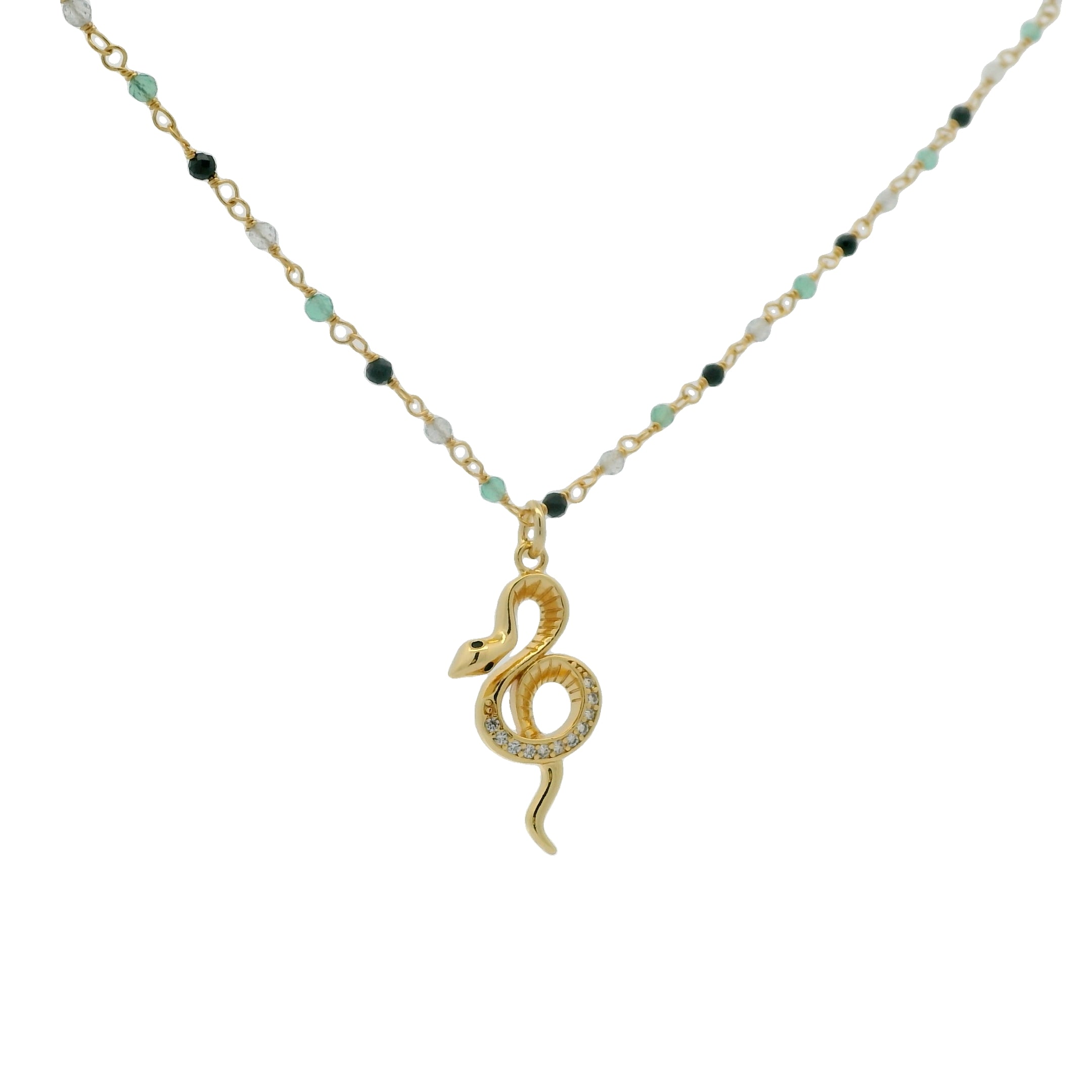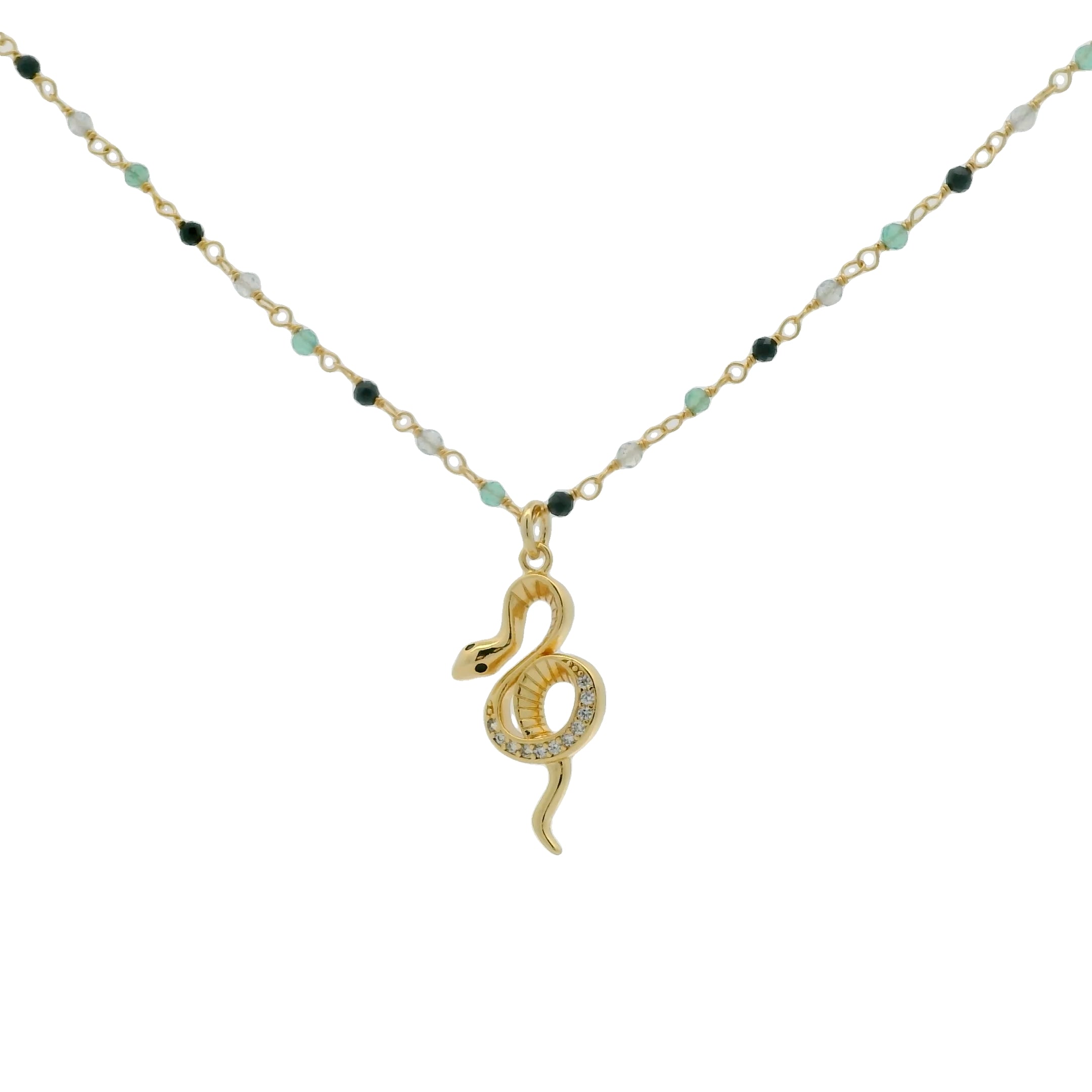 Sautoir rosary onyx verte onyx noire labradorite et serpent 75cm