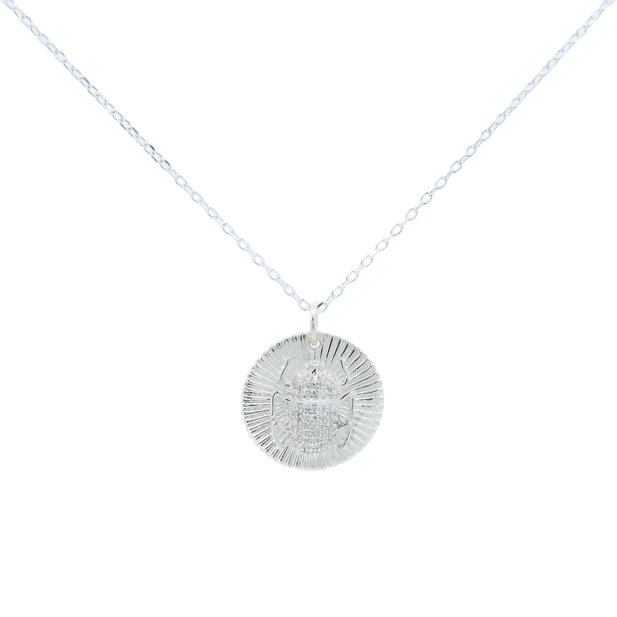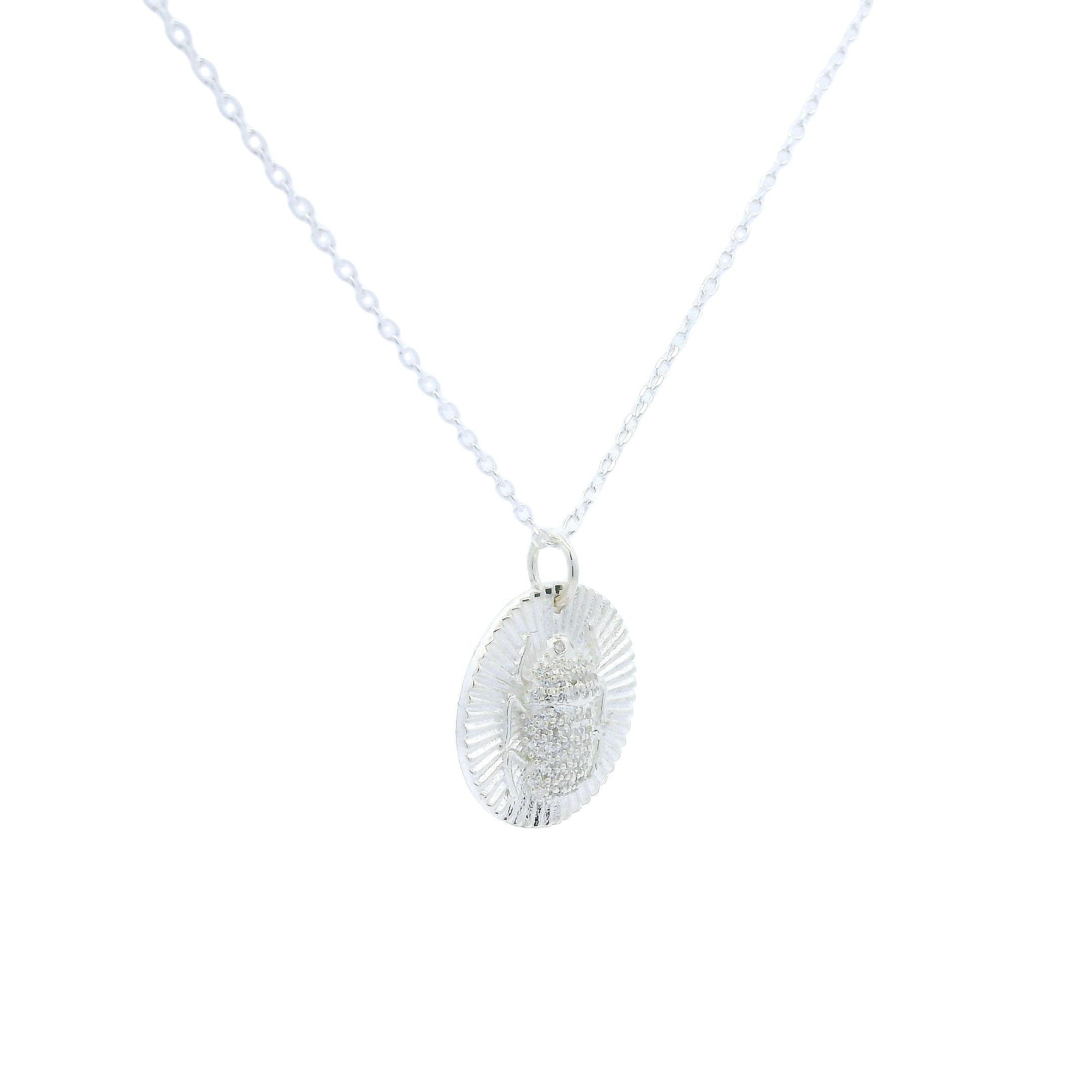 Collier en argent 925 médaille scarabée en relief 42 cm