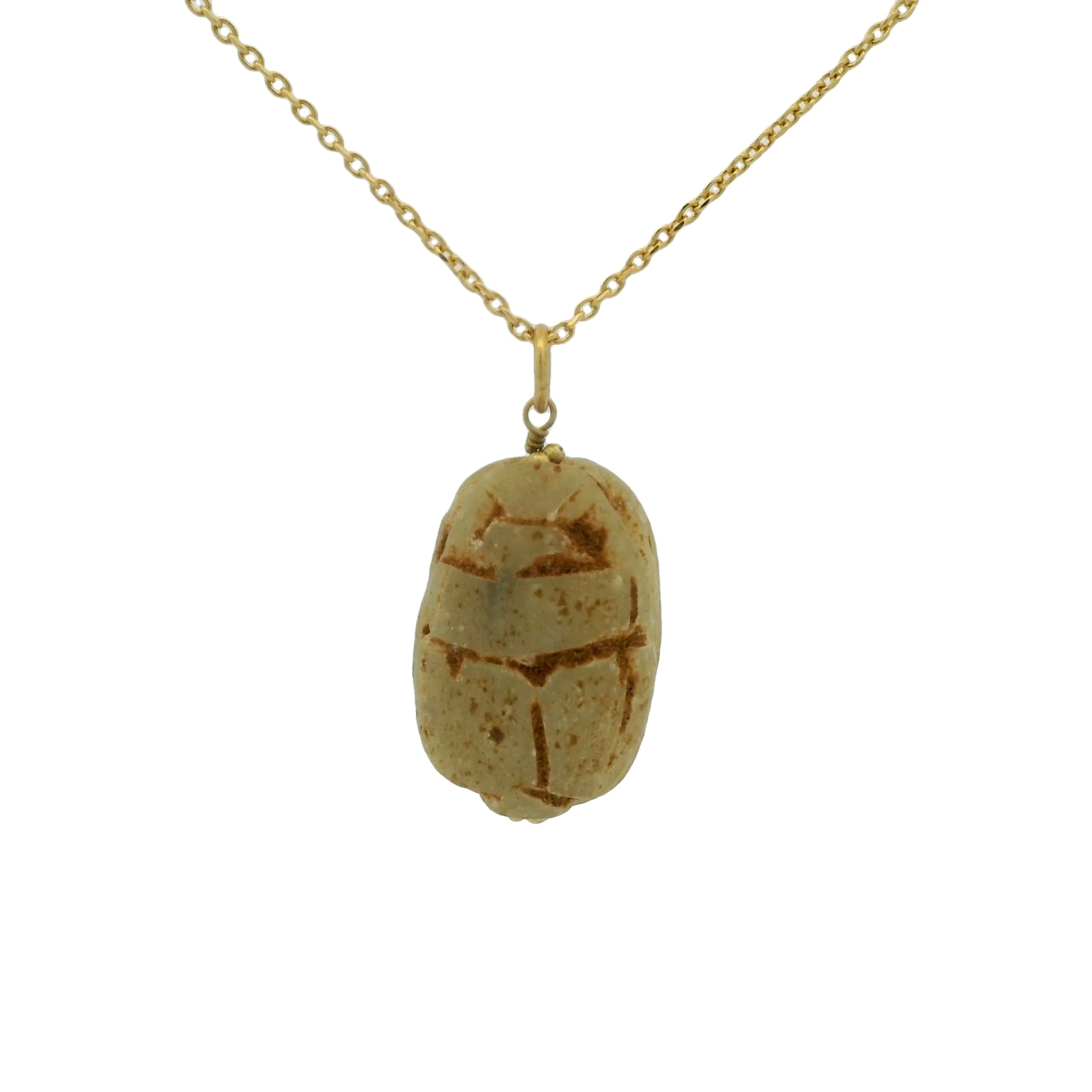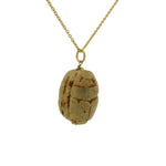 Collier doré gros scarabée bois beige 42 cm