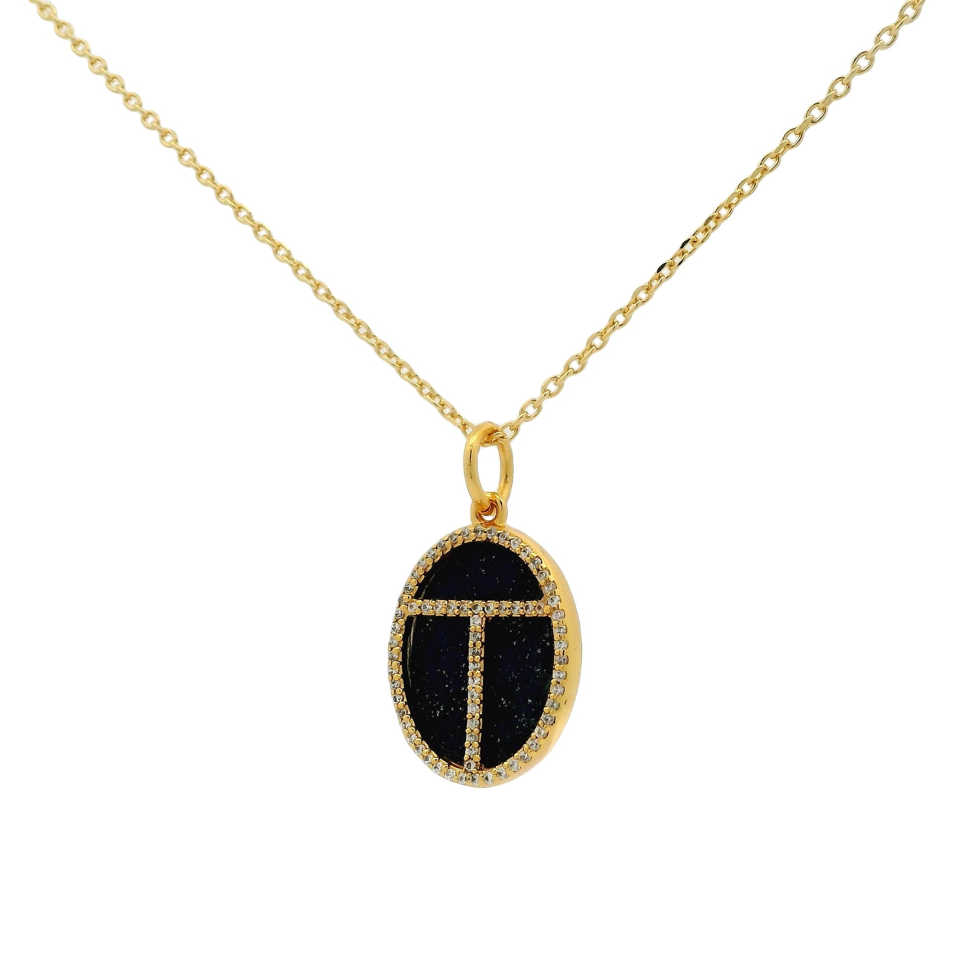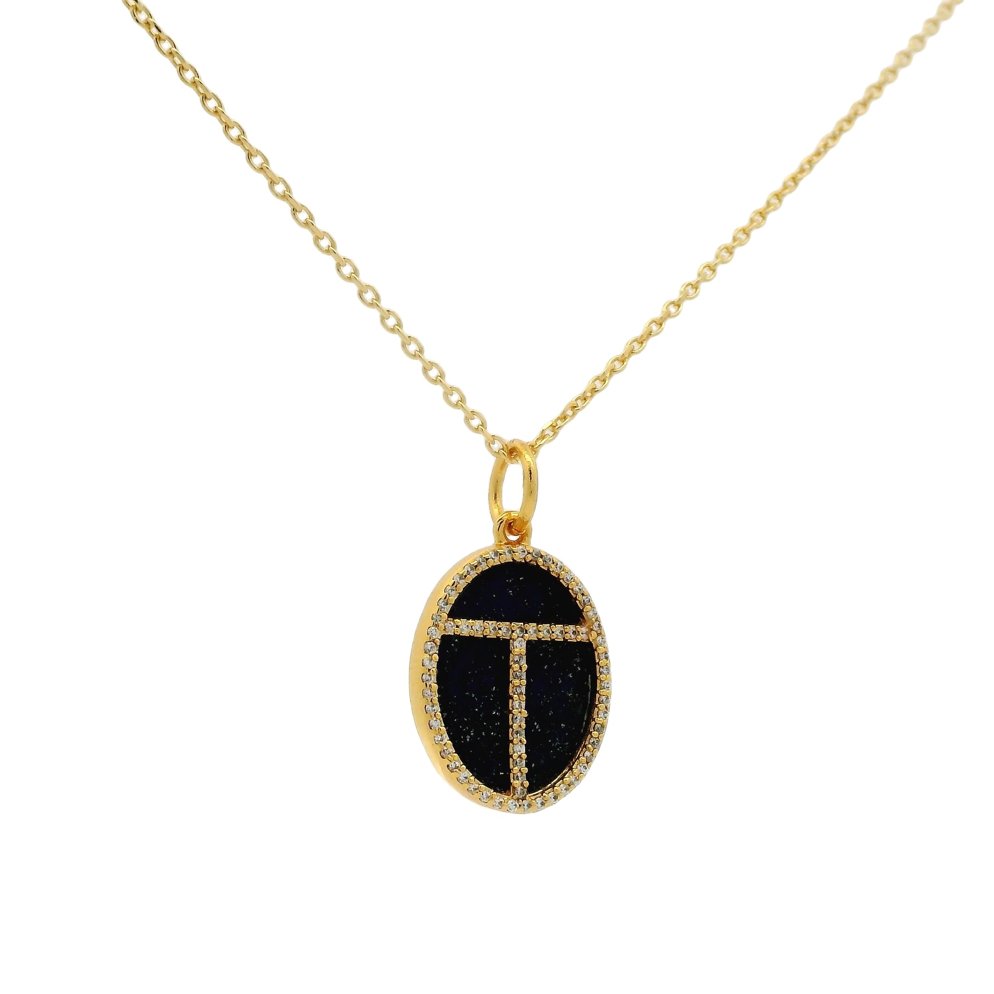Collier doré scarabée lapis lazulis et zircons blancs 42 cm