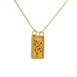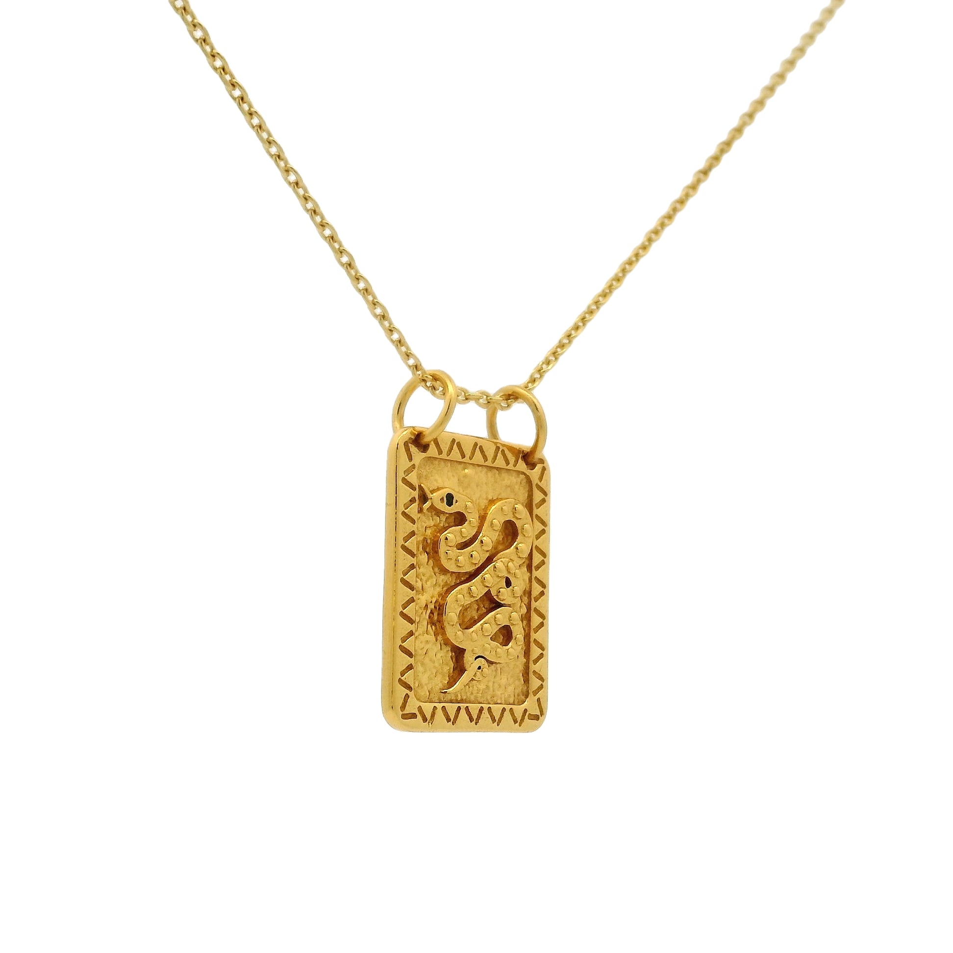 Collier doré plaque texturée serpent oeil en zircon noir 42 cm
