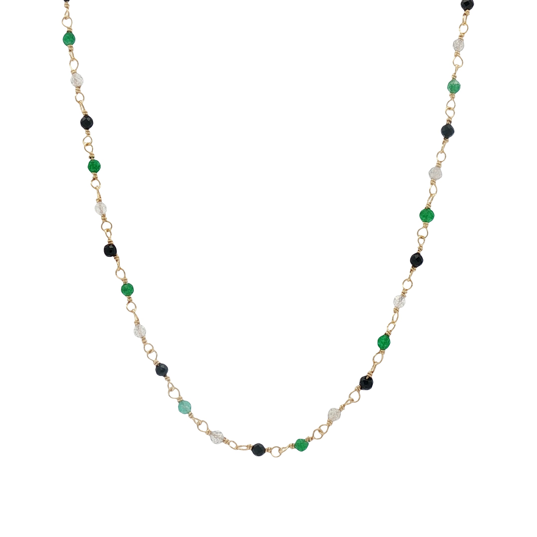 Collier doré Santa Maria en Onyx Verte, Onyx Noire et Labradorite
