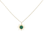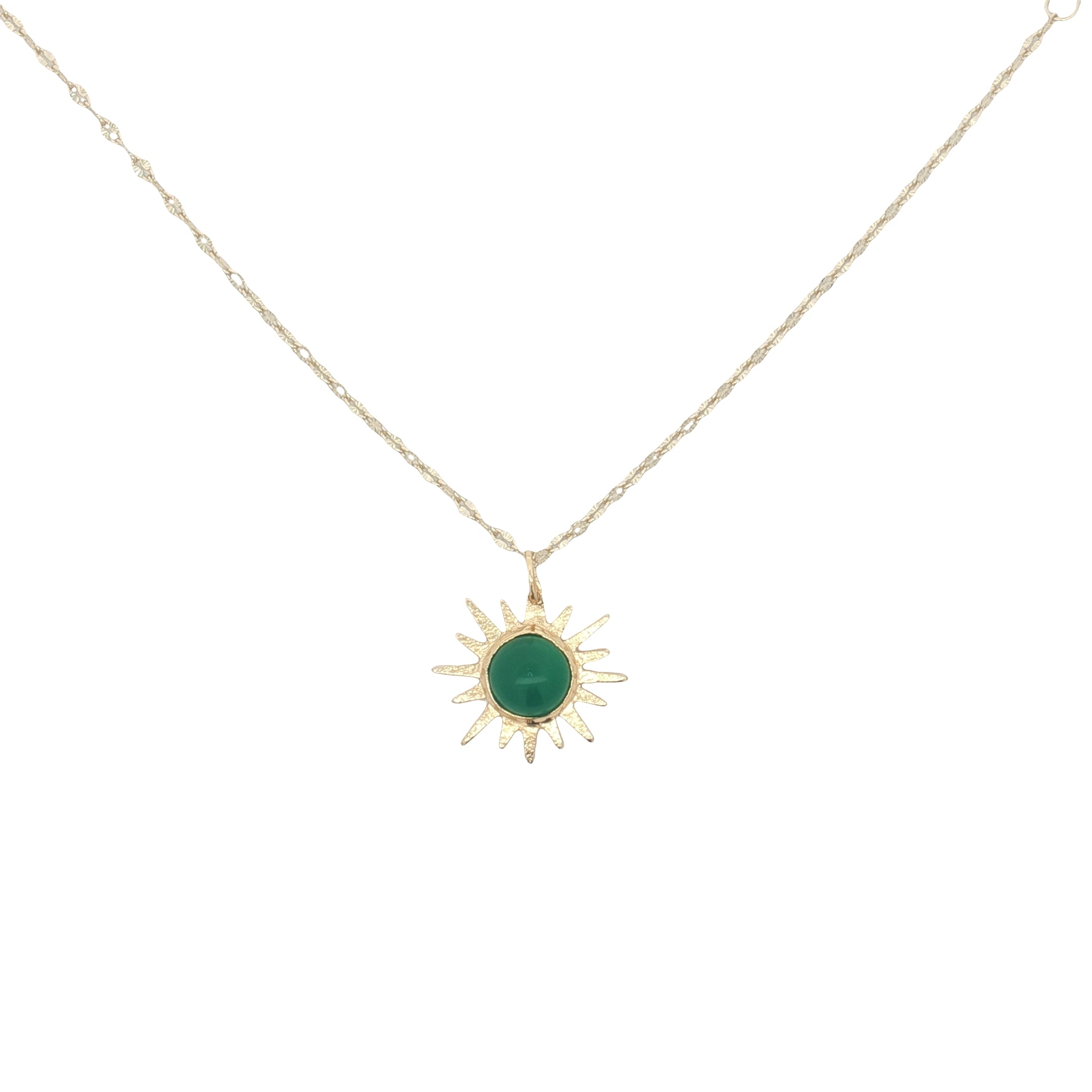 Pendentif soleil martelé avec onyx verte cabochon : 19 mm x 16 mm