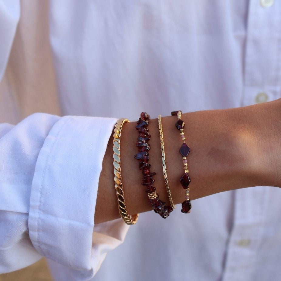 Créoles dorées chaines et pierres - ONYX NOIRE