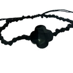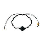 Bracelet doré sur cordon noir trèfle en onyx noire facettée