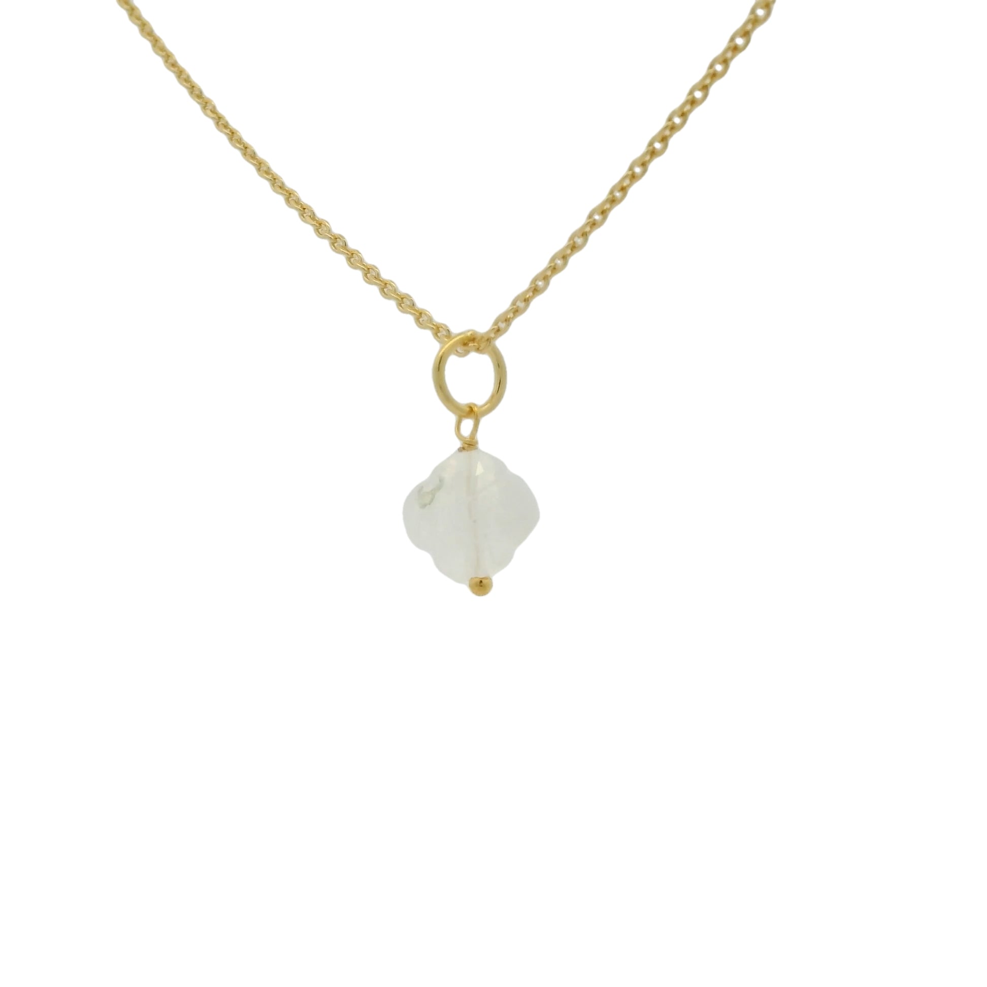 Collier doré petit trèfle en pierre de lune 42 cm
