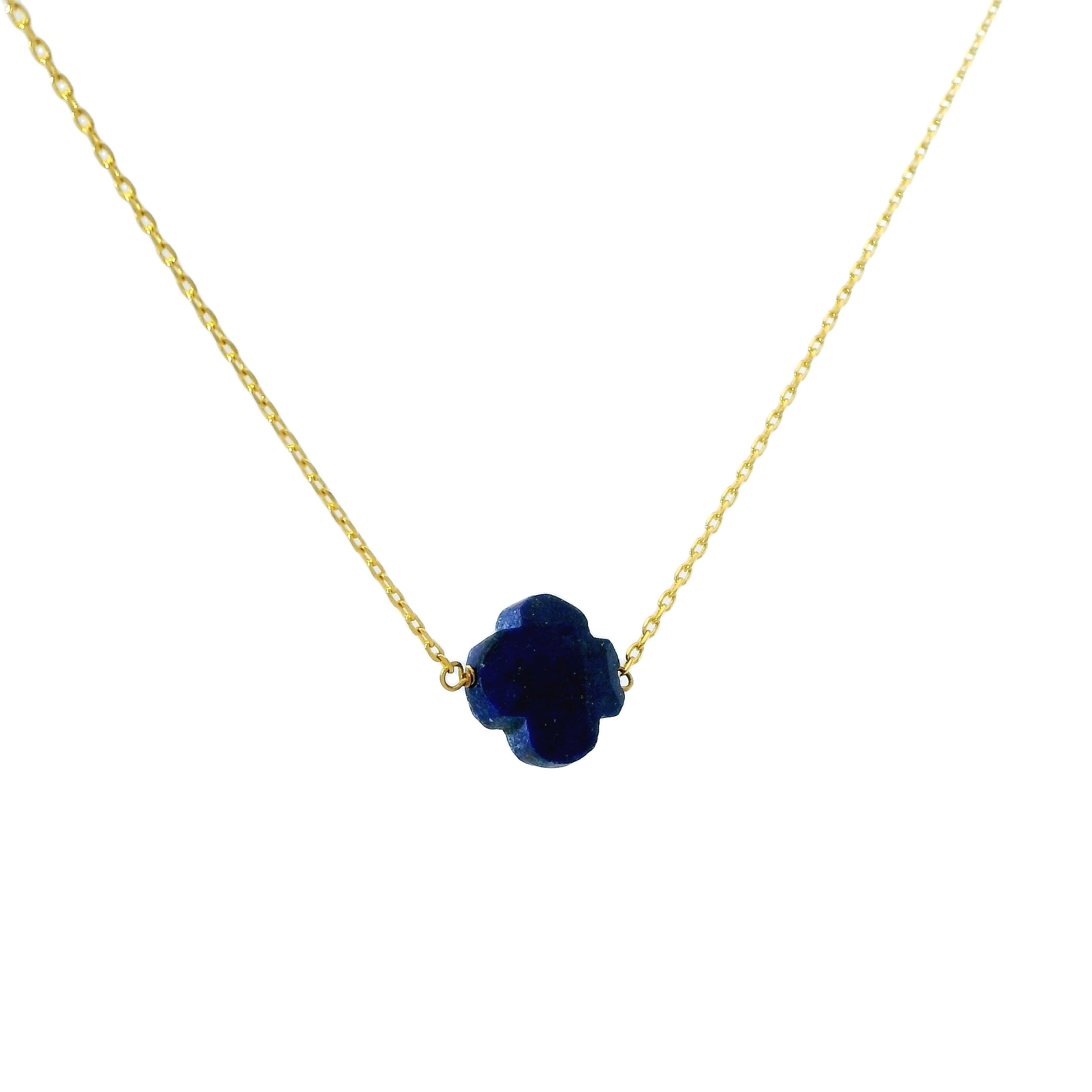 Pendentif trèfle en lapis lazuli facettée : 12 mm