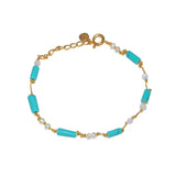 Bracelet en laiton doré à l'or fin 18k et pierres naturelles rondes et carrées. Le bracelet se compose d'un fil doré fini par une attache classique en maillons.